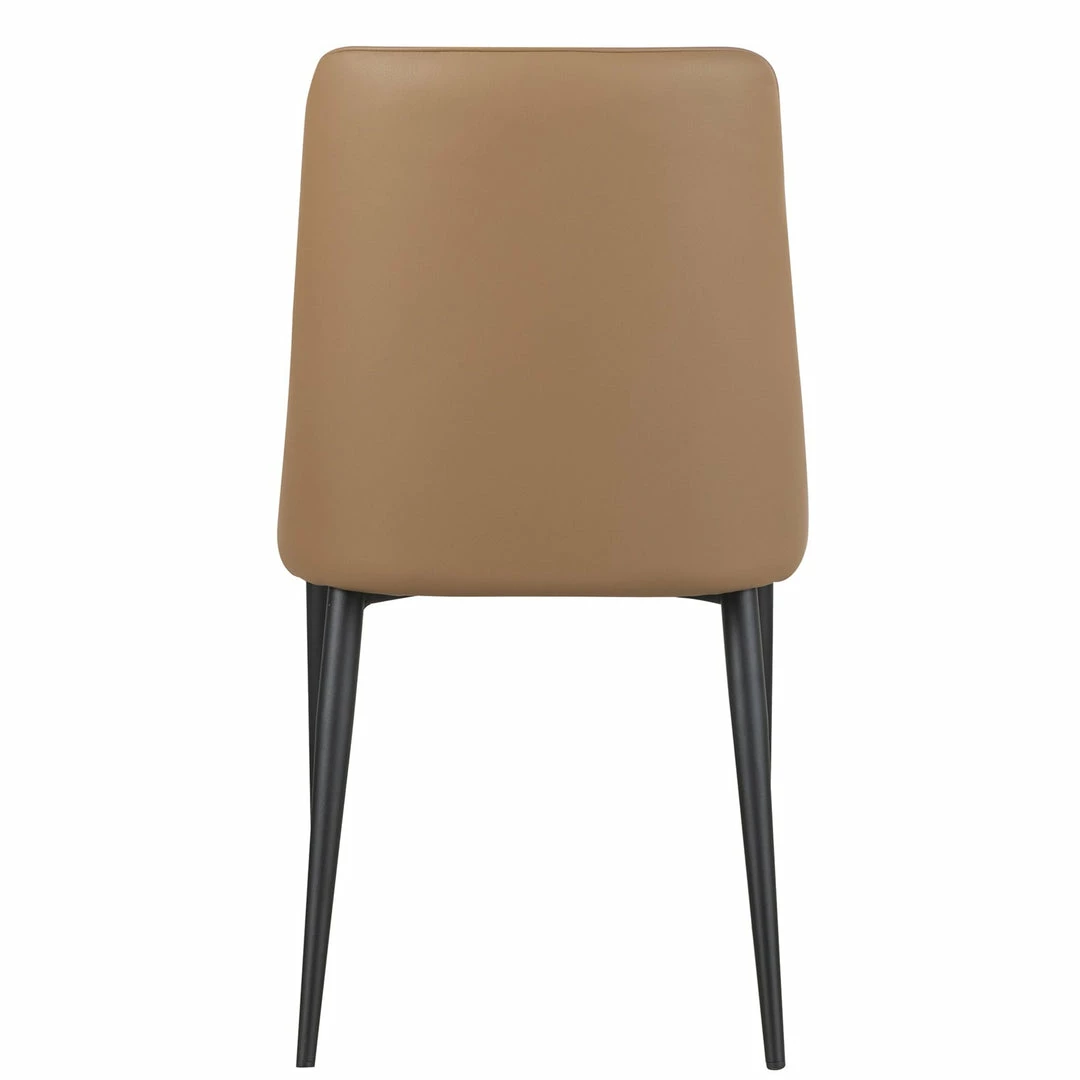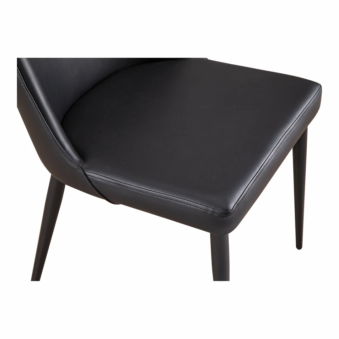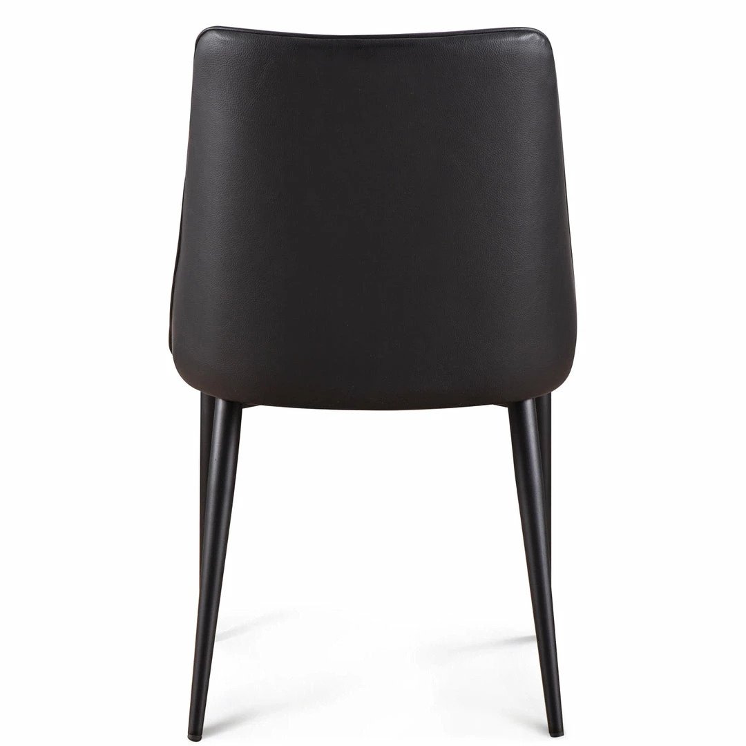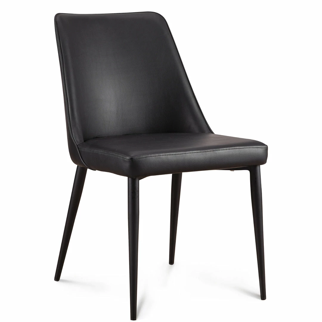 Shapely and sleek, with a scooped back and tapered legs, James vegan leather upholstery and simple design brings contemporary cool to the dining room