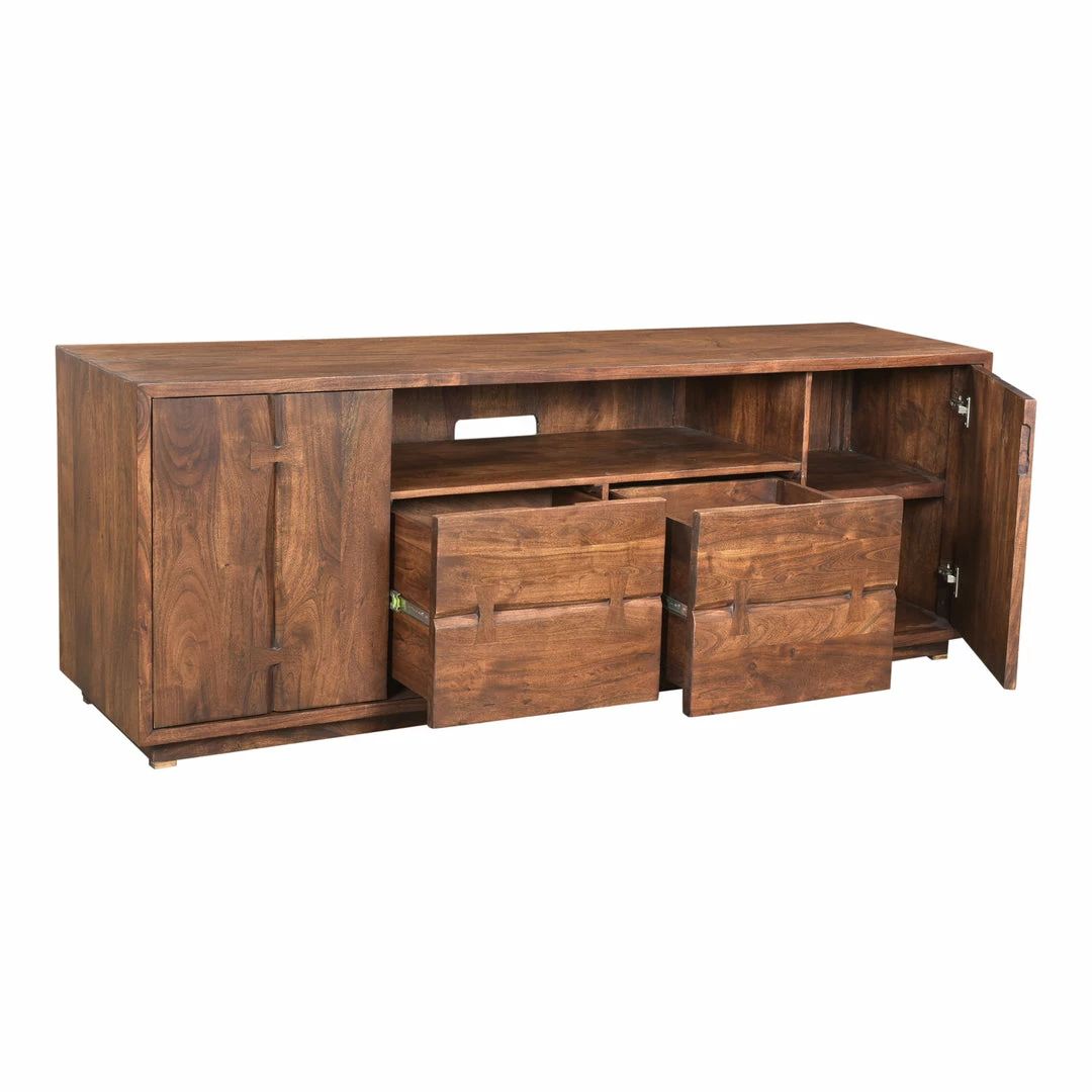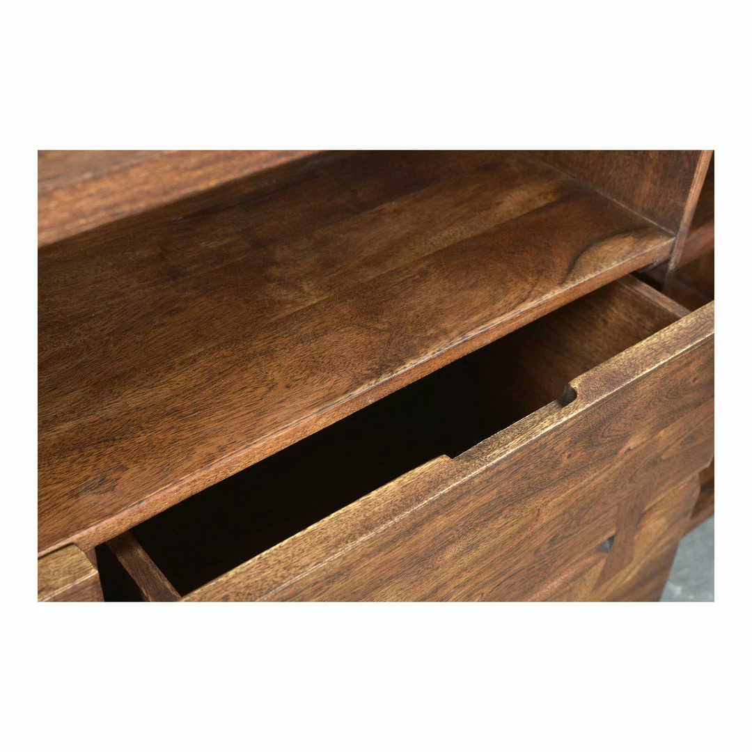 The Madagascar collection features solid, live-edge acacia, with a warm brown finish that highlights the natural wood grain and creates a warm, inviting look for your home.