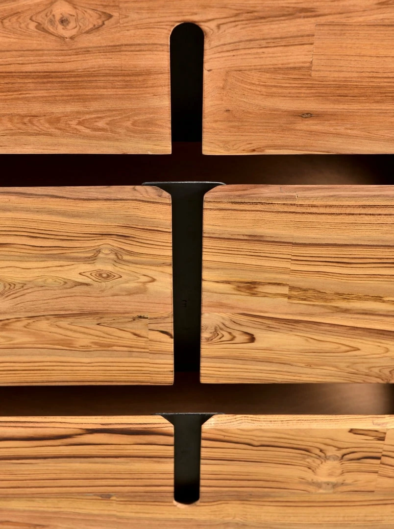 Solid reclaimed teak defines the unique simplicity of the Vienna Collection. Each piece of wood exhibits its own knot and wood grain finish. With six large drawers, the Vienna Dresser provides ample storage and a sophisticated design.