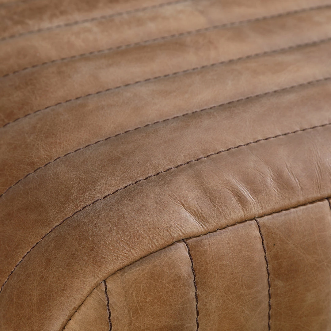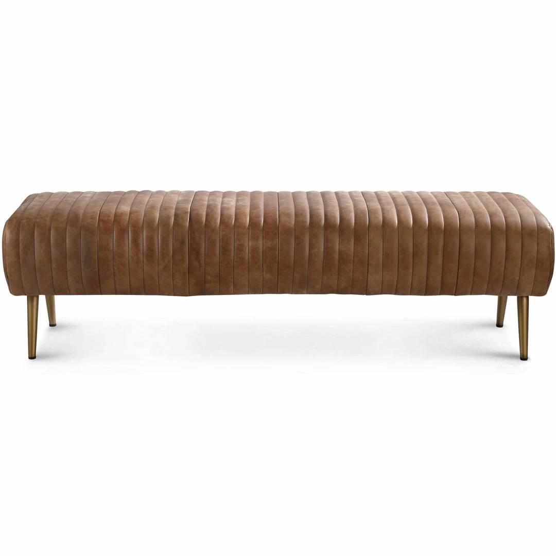 Add a little retro west vibe to your decor. The Saddle bench features smooth ribbed design, top-grain vintage leather that has a worn in look and feeling. Park at the end of a bed or add to a living space for extra seating.