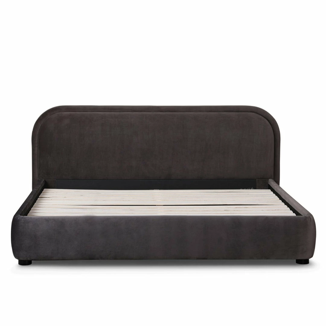 Effortlessly luxurious, the Yoko bed’s sumptuously padded curved headboard and soft velvet upholstery will make a statement in any setting.