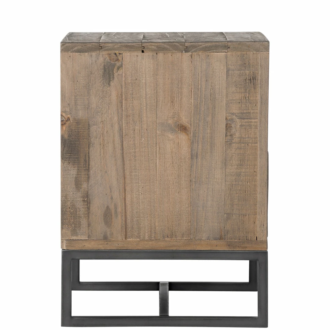 Give your bedroom a uniform industrial look with a rustic feel. Made from solid pine wood in a light stain, the Kai night stand is streamlined and simple with two spacious drawers and iron base.