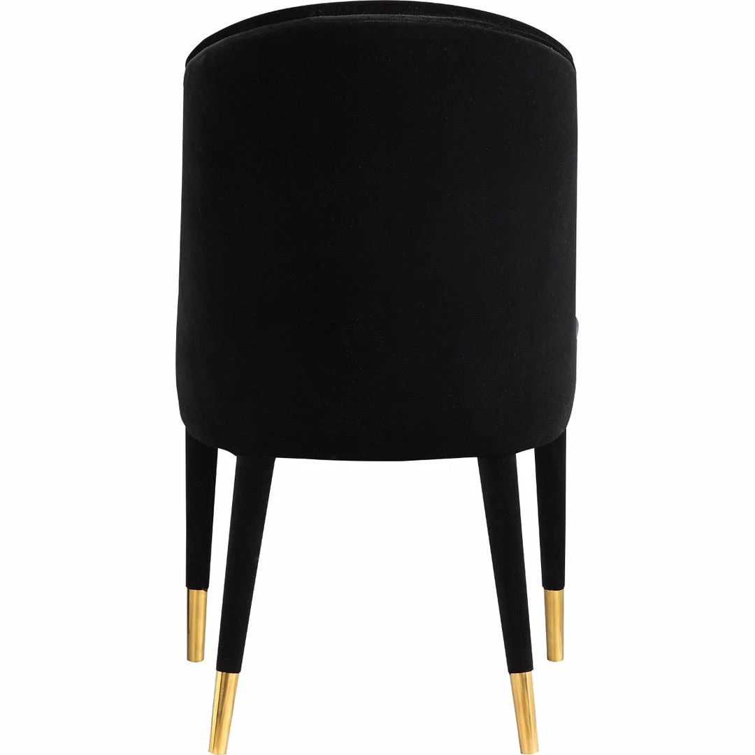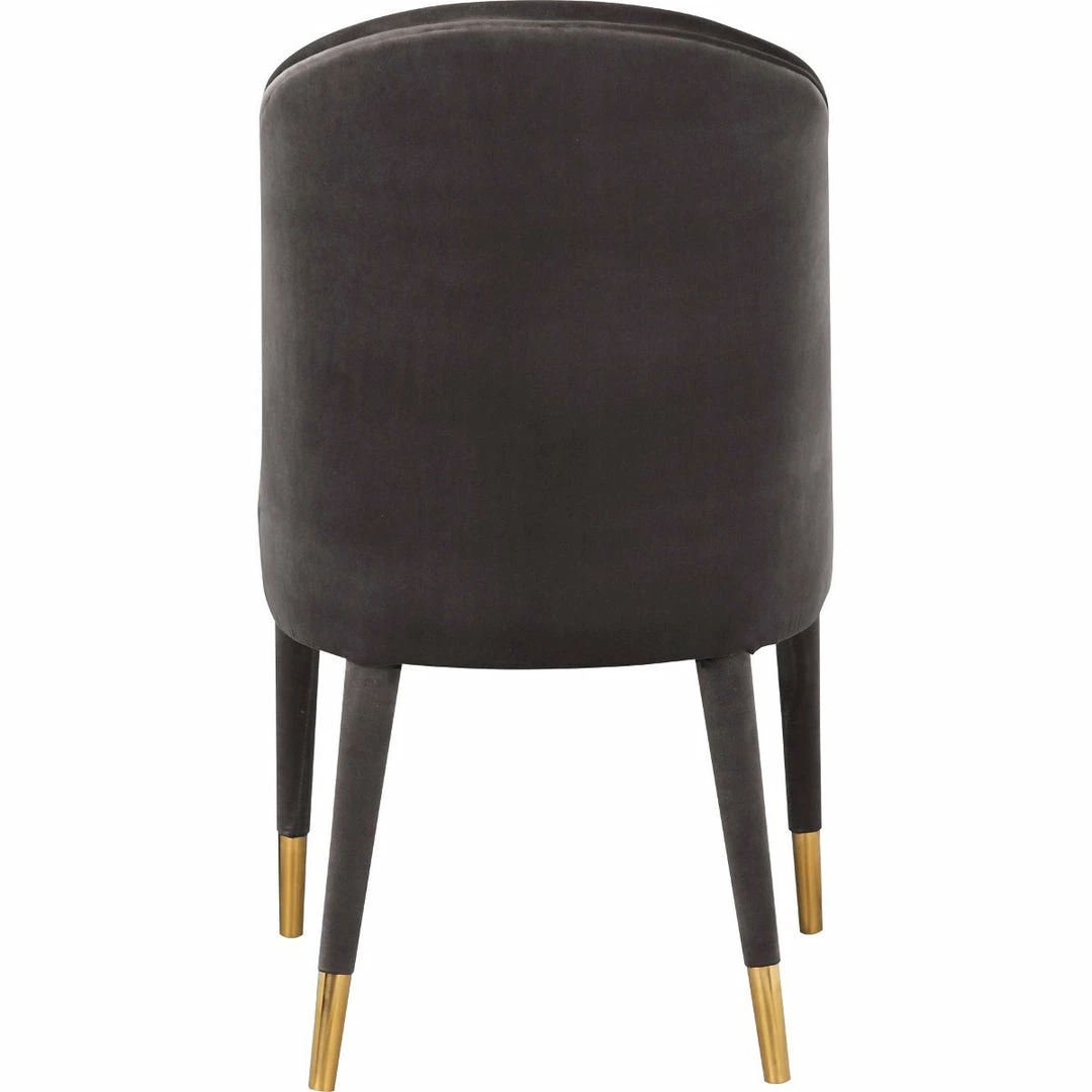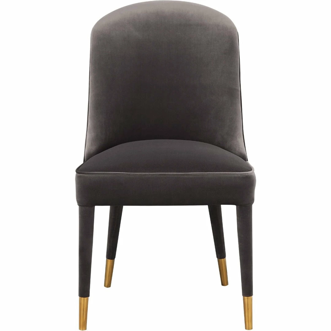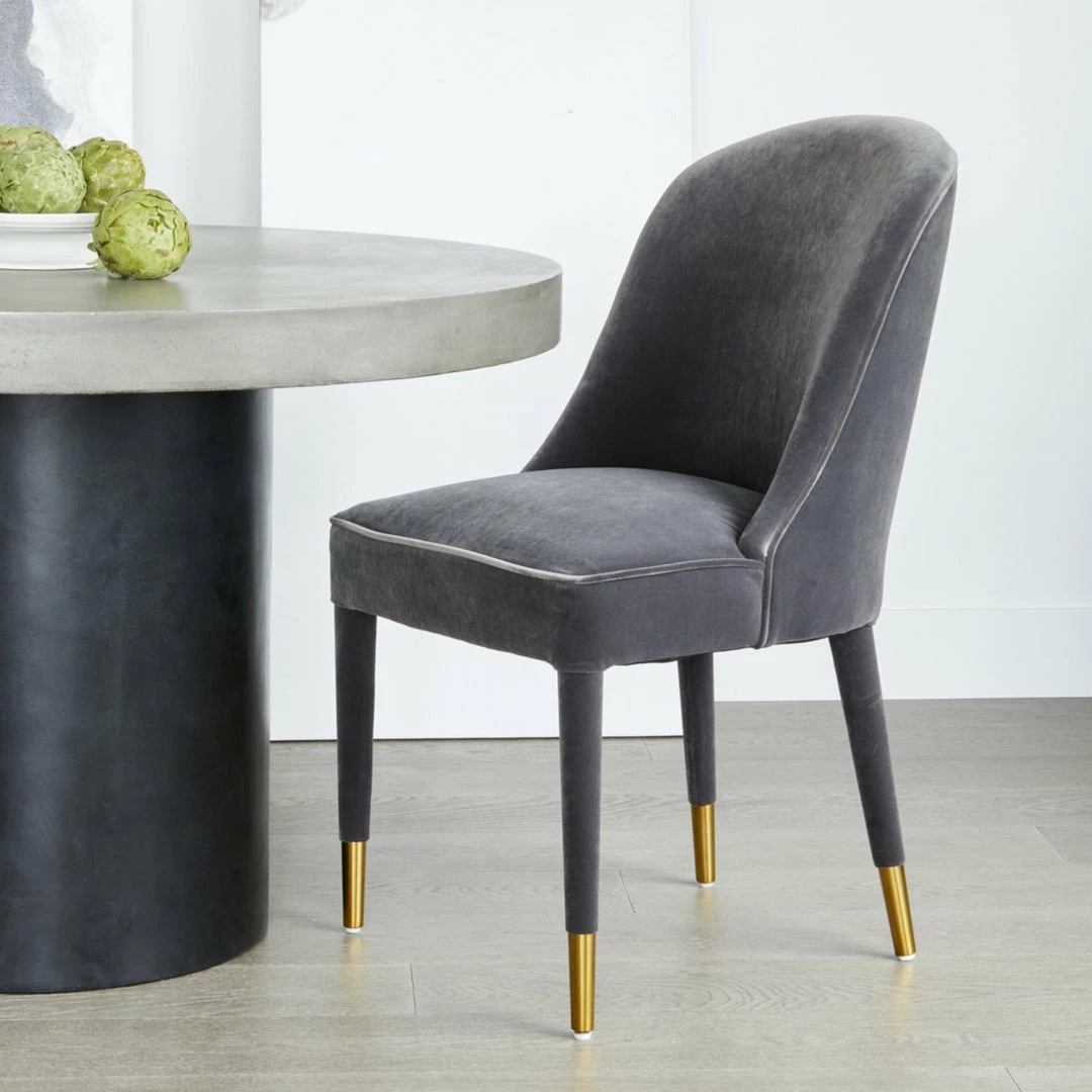 The height of fashion, the mid-century Italian-inspired Liberté High-Back Dining Chair features a towering rounded back, plush velvet, and angled upholstered legs with gold tips for sleek comfort. Use a pair as captain chairs or go all in with a full set to bring drama your dining room.