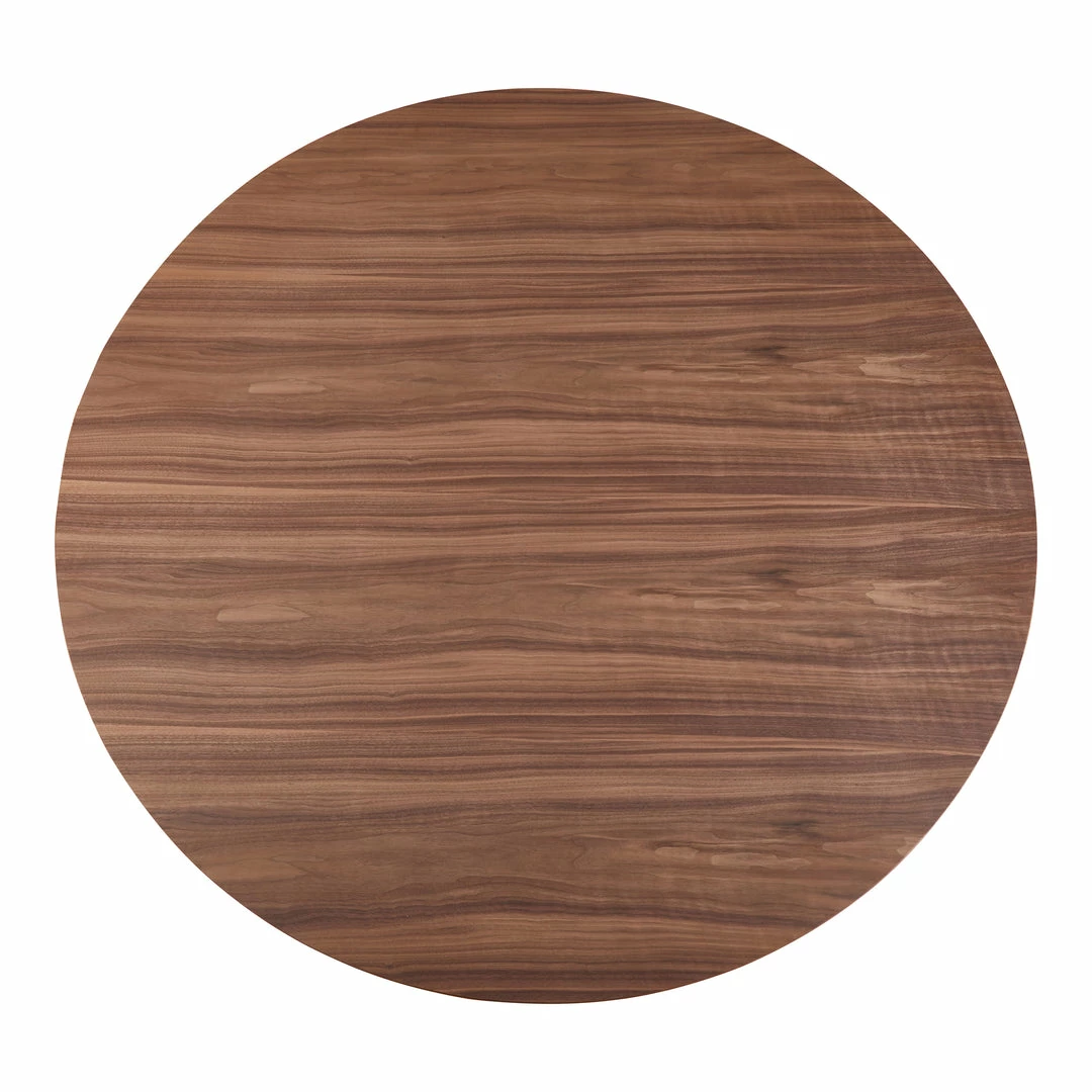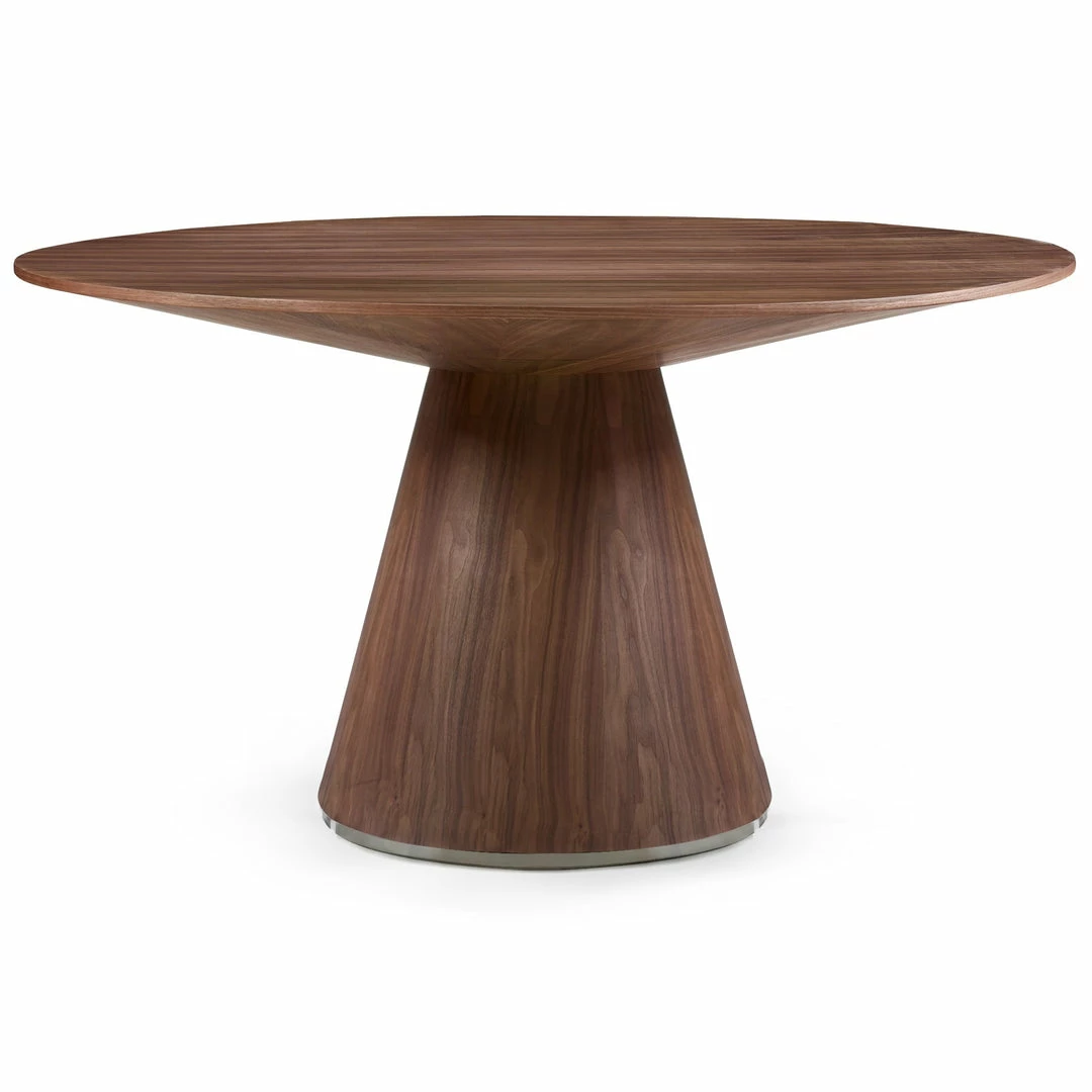 Perfect for the classic modernist. Nestled on top of a walnut pedestal, the Otago Table features clean lines and a contemporary style that will brighten up your dining area with its warm hues and circular design. A rich walnut veneer, and brushed stainless steel detailing complete this tables seamless look.