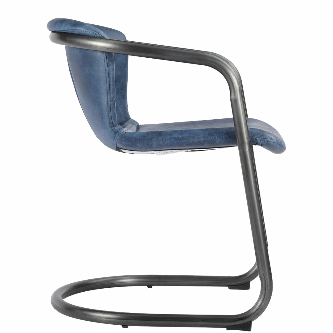 Add the Revolve Dining Chair to complete your vintage industrial classic design. Finished with a vintage blue top-grain leather and iron framing.