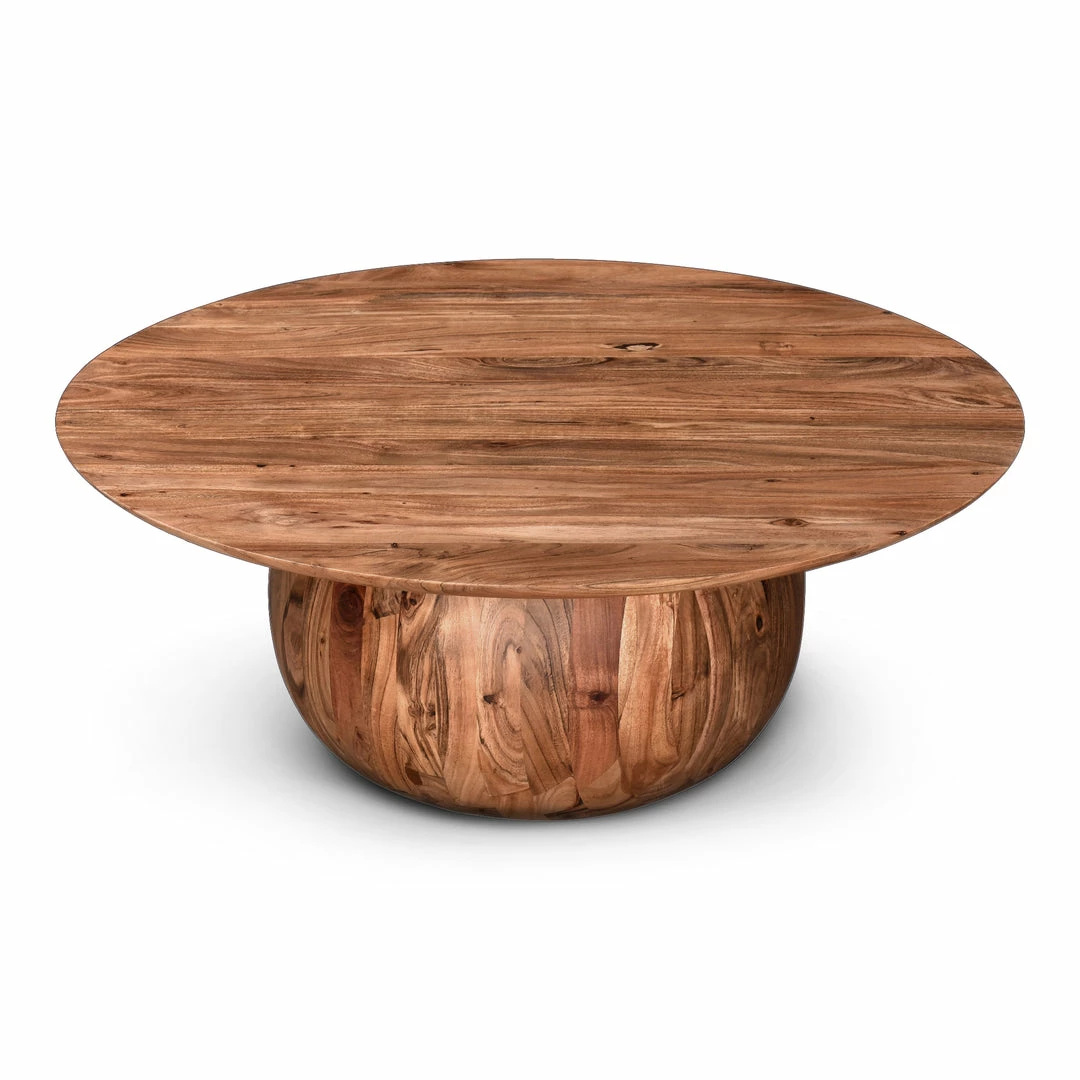 From the ground up, the Boulder coffee table is a classic with exceptional personality. Brightened by its solid Acacia wood build, the natural color highlights many shades and grain patterns of the material. A semi-gloss finish on the coffee table enhances the overall aesthetic for a complete look.