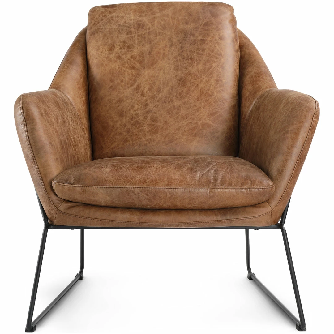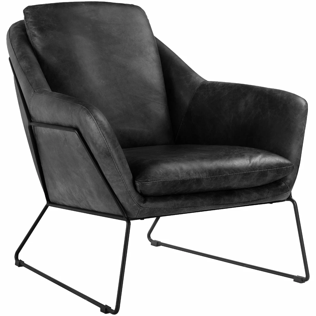 The Greer club chair is a beautiful modern design that will attract the eye with its sleek look. The cushions are made from top grain vintage leather set in a black iron frame.