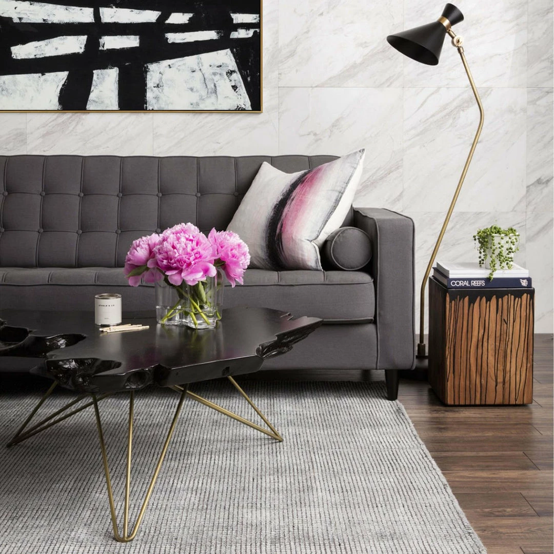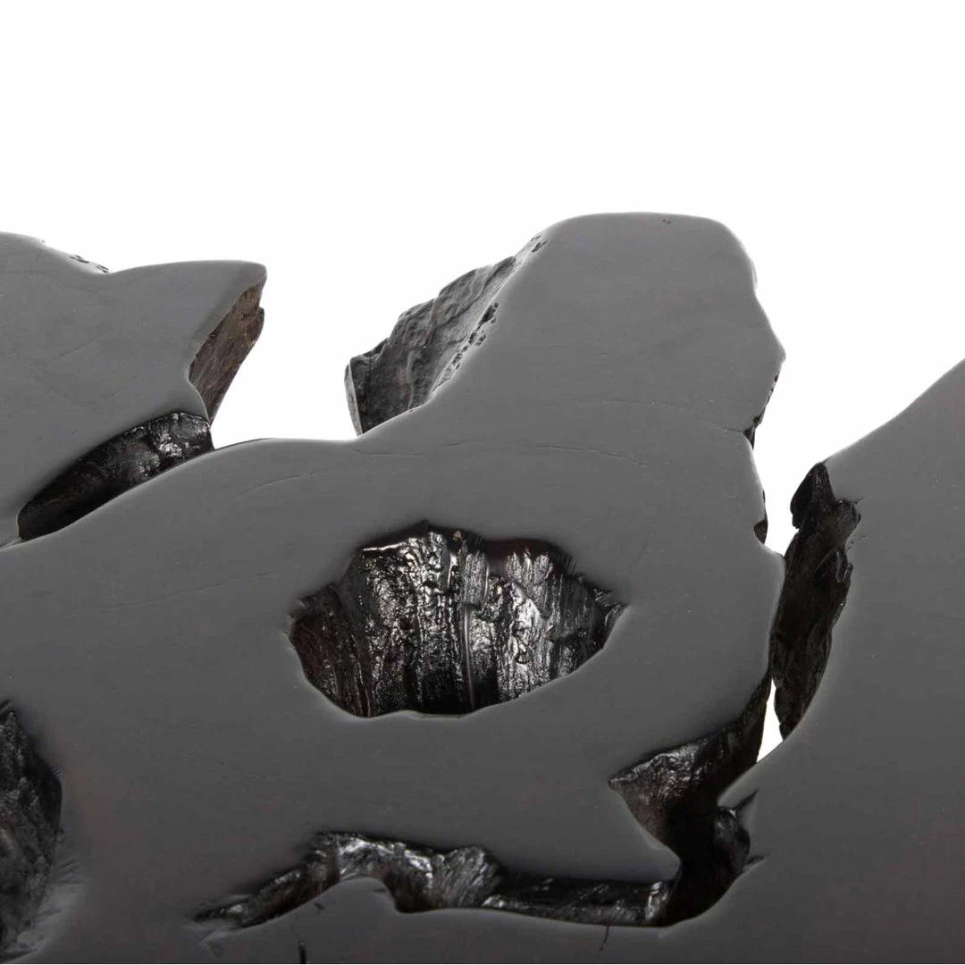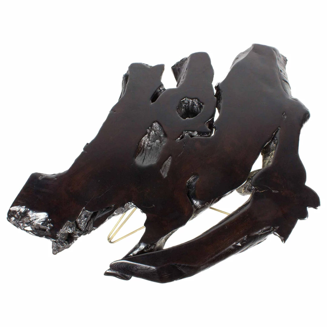 The Lava Table is a slice of natural teak with a uniquely beautiful dark java brown finish with undertones of deep red. The star pattern hair pin legs offer Midcentury syle to this uniquely organic modern peice.
