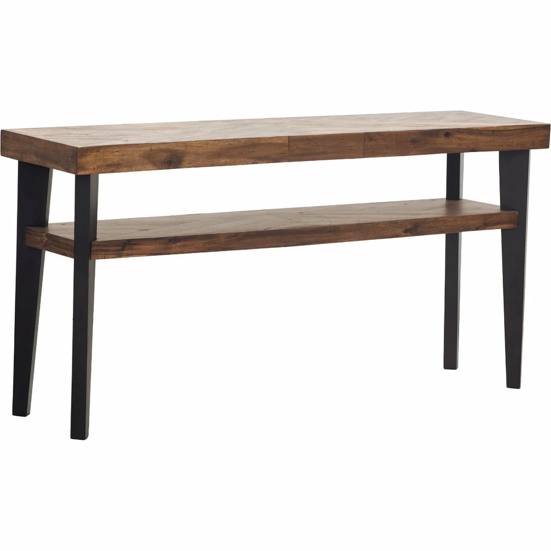 Each piece of solid acacia is carefully hand-selected to ensure great looking tops with attention paid to variation and the final appearance of each individual piece. Parquet patterned top with painted black legs.