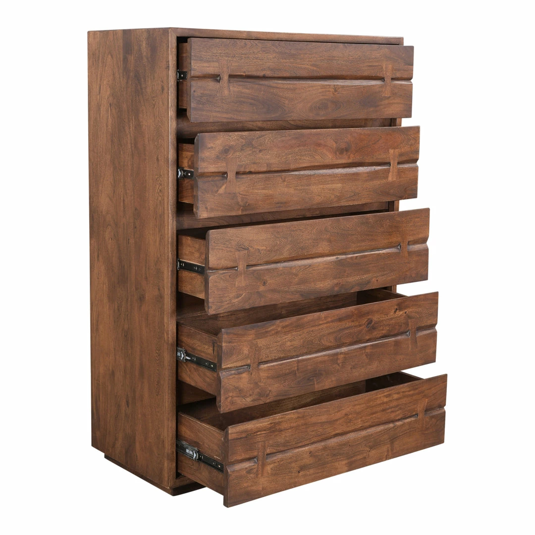 The Madagascar collection features solid, live-edge acacia, with a warm brown finish that highlights the natural wood grain and creates a warm, inviting look for your home.