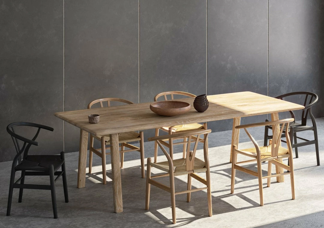 The Malibu dining table embodies an organic aesthetic through its design. Thick pieces of solid white Oak wood is used from head to toe, showing off this pieces beautiful grain pattern and shades. The rounded edges on the legs and table-top creates a flow that is more contemporary and natural.