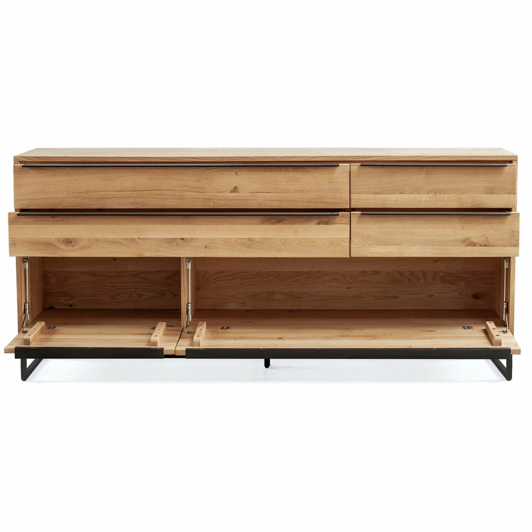 Inspired by Scandinavian design, the Nevada Sideboard is the ultimate storage for your dining room. Complete with drawers and cabinets, you’ll have plenty of room to store dishes, glasses, and table linen. Long-lasting oak and a metal base make this a solid piece for your home.
