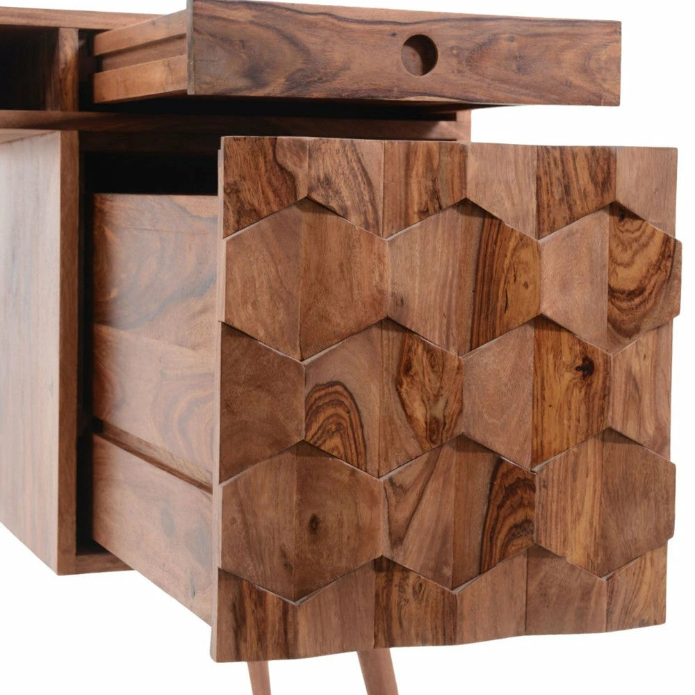 An Intricate wood pattern makes this desk beautiful and eye-catching. Made of solid sheesham wood.