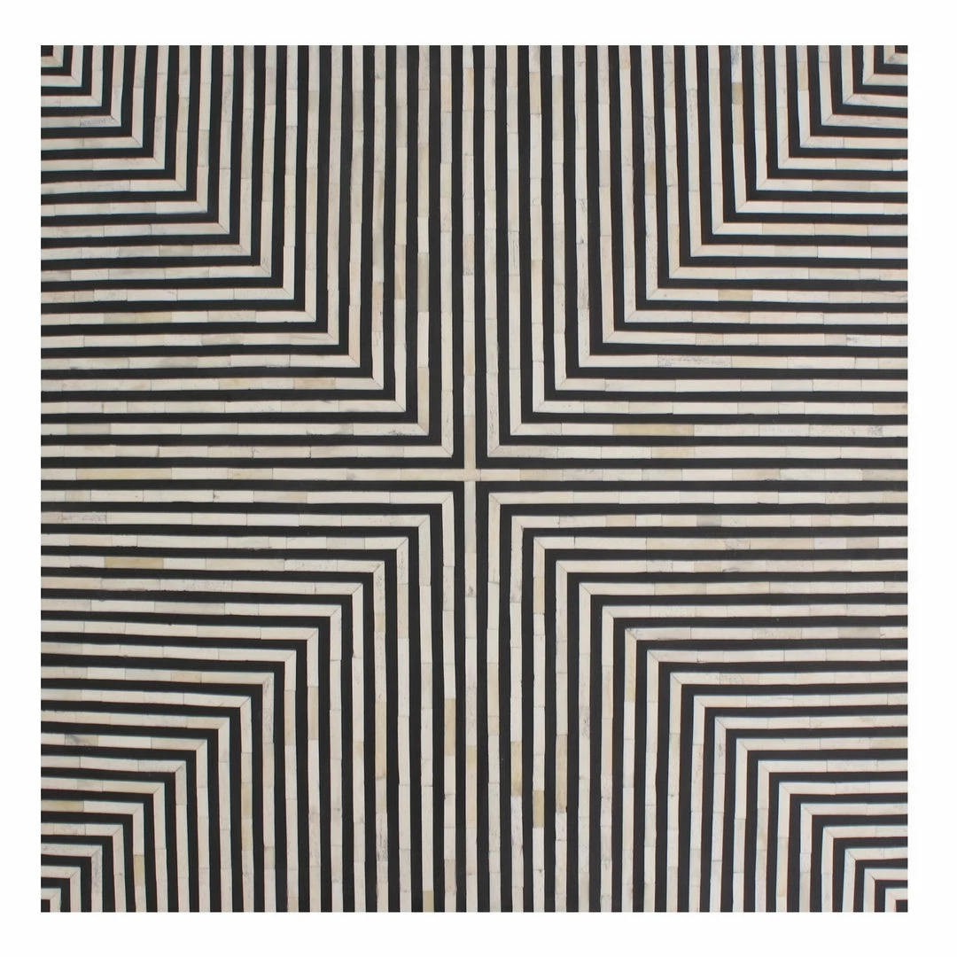 Simplistic and bold, this block coffee tableโs hypnotic art deco design is an exercise in contrast. A veneer of ethically sourced white and black camel bone with resin adds a visual statement that contrasts with its simple construction and square shape.