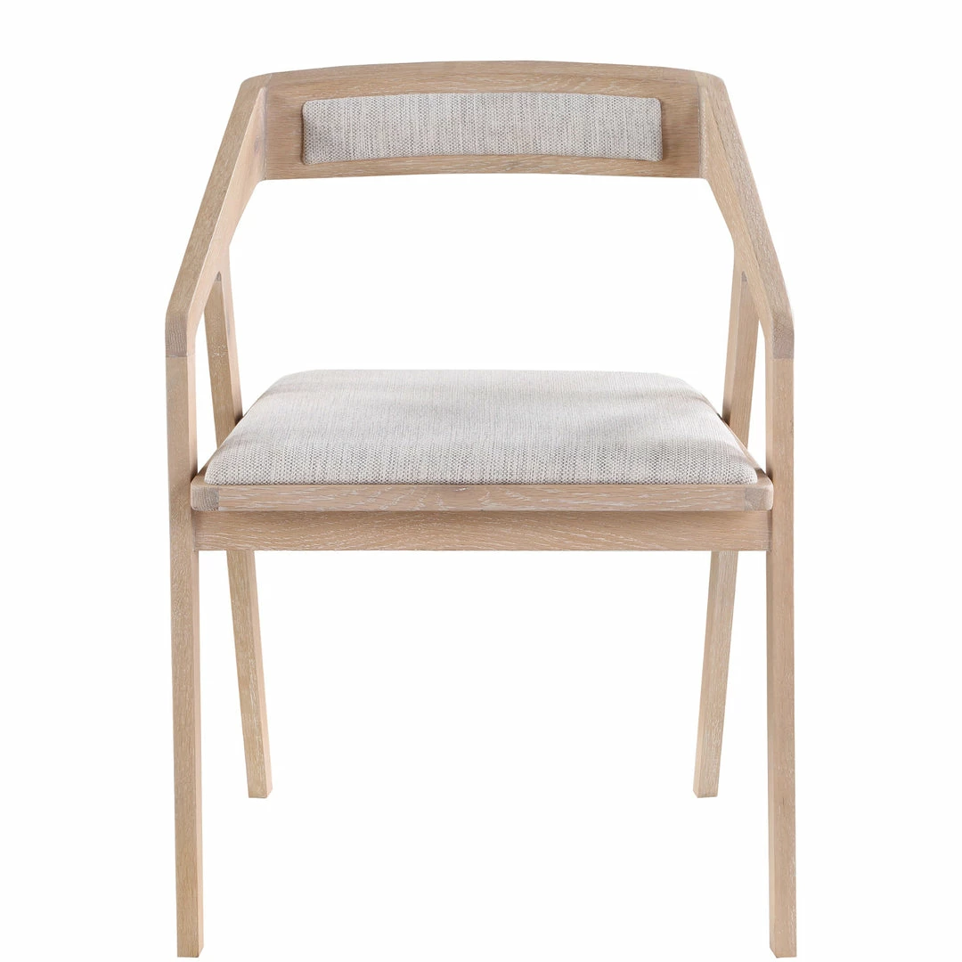 Clean lines meet sleek, minimalist form with its white oak frame, flared back leg, and tonal fabric. An ideal addition to elevate your table-scape design or to float around your social area as extra seating for that unexpected guest.