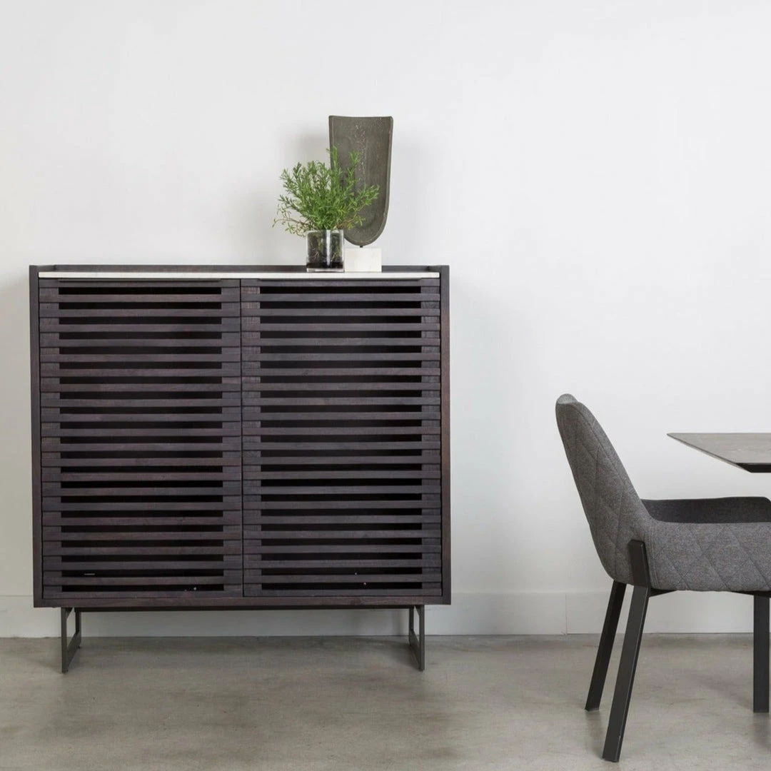 The Paloma Cabinet is the perfect co-star to your dining room table. With a marble top and ribbed cupboards, the Paloma brings texture to your space. Three large shelves give you ample space to store all your dinner party essentials, games and more.