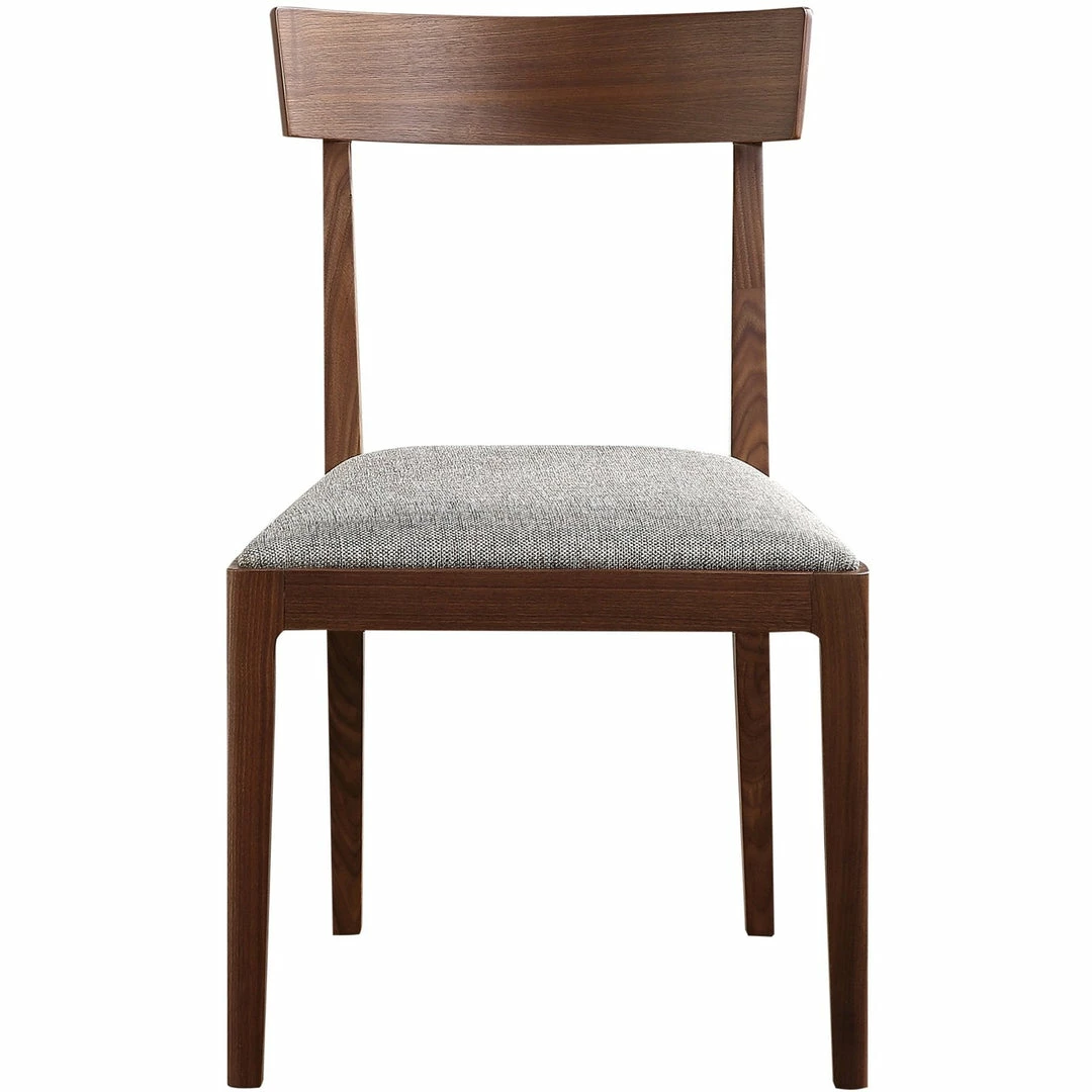Streamlined with all the mid-century modern vibes you can settle right into, the Pima side chair uses an open backrest for sleek, minimalist form. With its rich walnut frame, curved back leg, and tonal fabric, the Pima chair is an ideal addition to elevate your table-scape design.