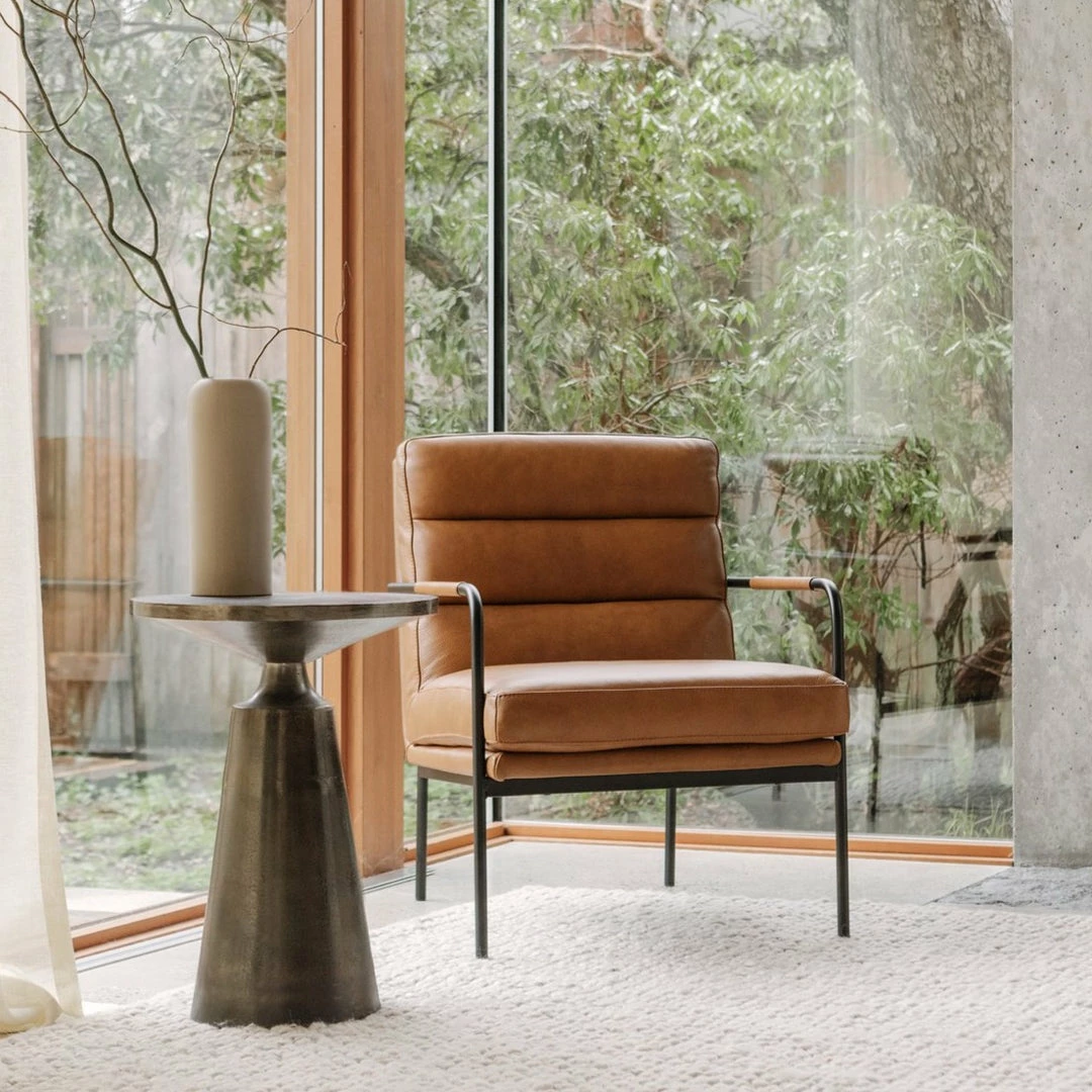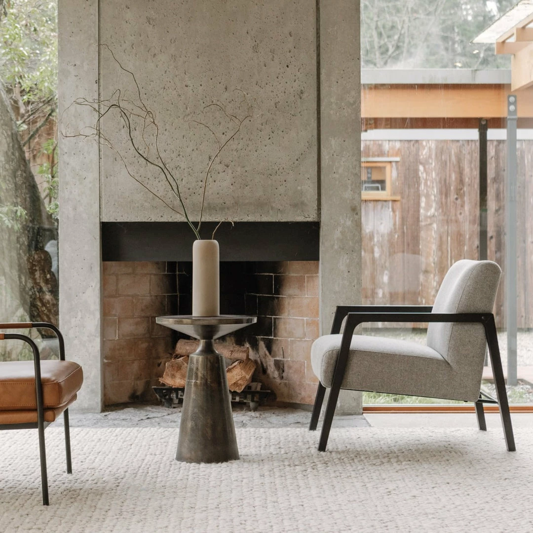Sleek and sculptural, this sturdy metal accent table has a dark iridescent metallic finish for a cool, industrial-modern touch.