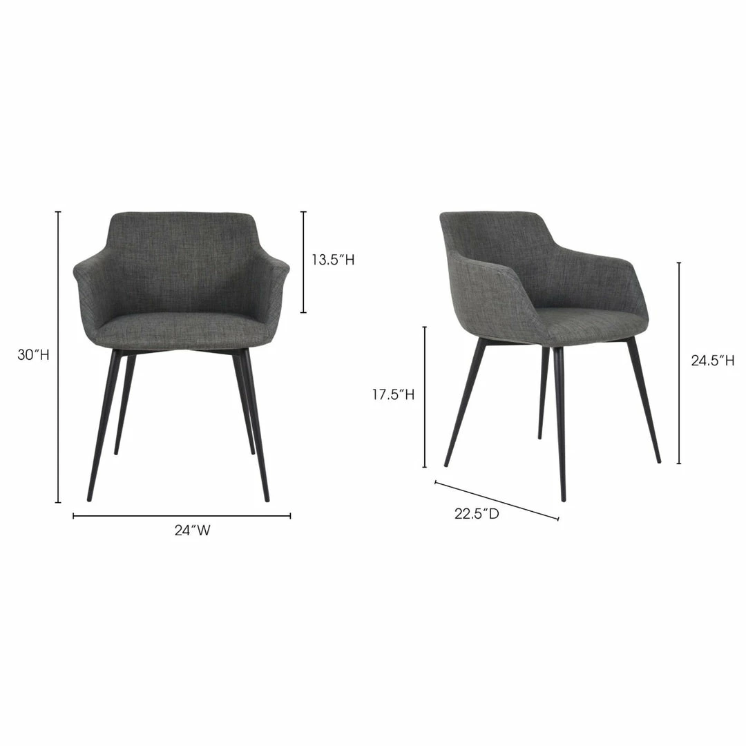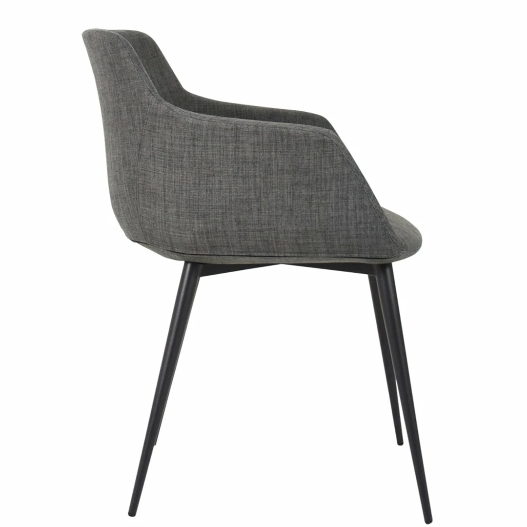 The Ronda Arm Chair is a classic mid-century design with a contemporary twist. Made with 100% polyester fabric and steel legs.