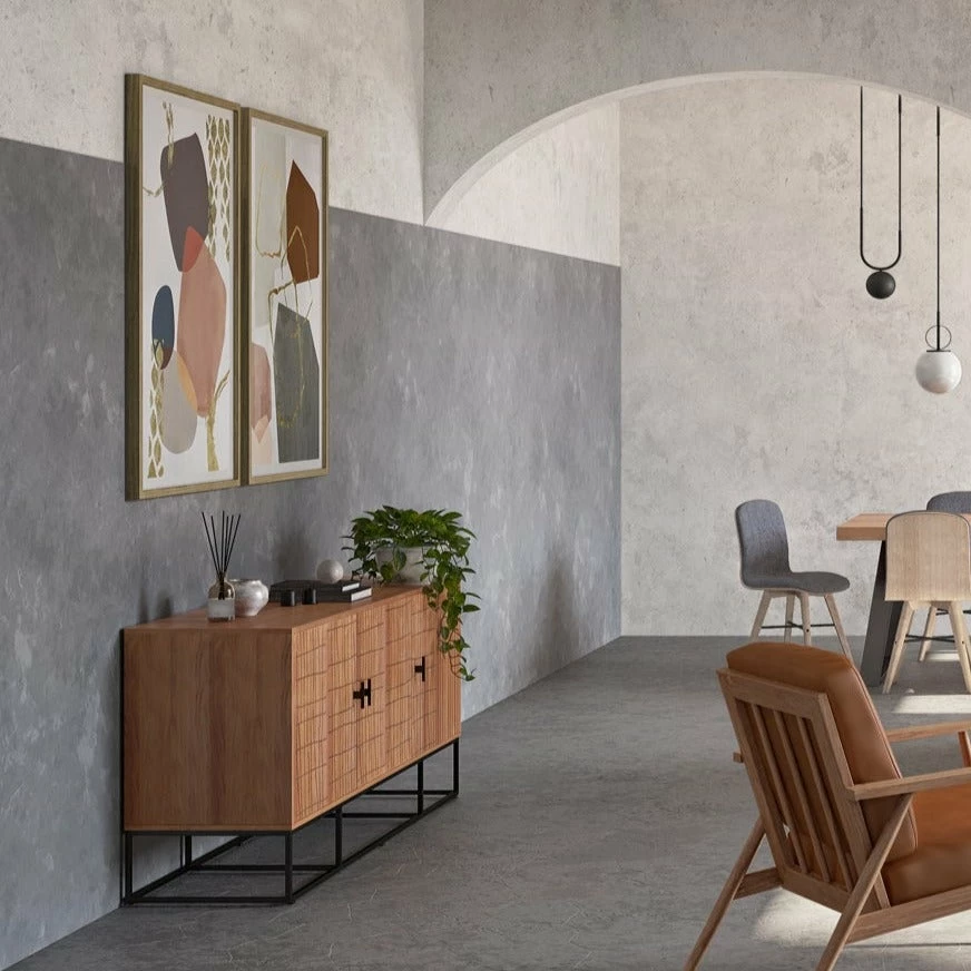 A thoroughly modern design, this glass framed abstract ink print on paper is presented in earthy neutrals and monochromatic pastel tones accented with brilliant gold flake patterns. Finished in a natural oak poly frame with hanging hardware included.