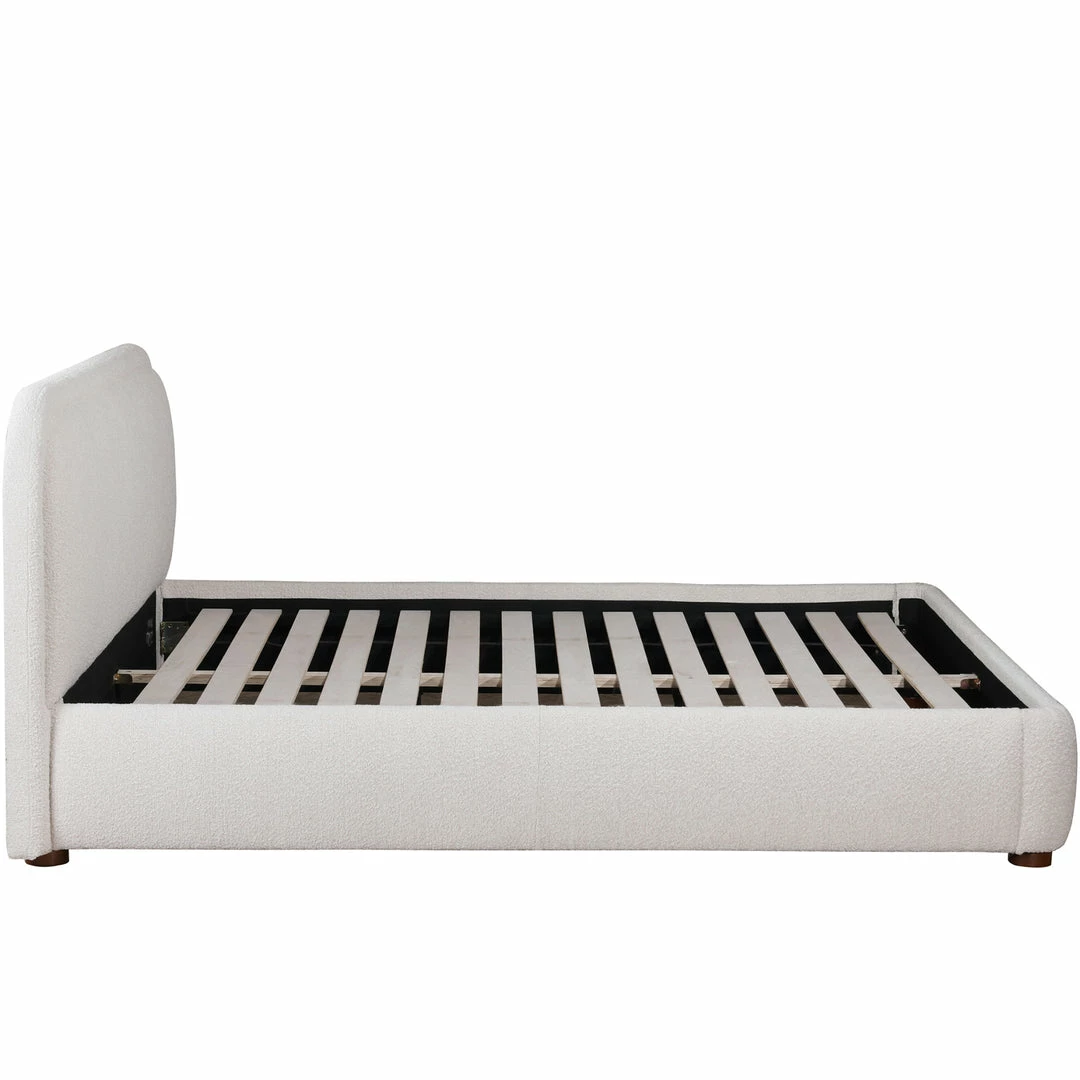 Made for mellow spaces and doubled down in softness, the Yoko bed’s perfectly padded curved silhouette and sumptuous bouclé upholstery will make your bedroom an inviting place of pure relaxation and tranquility.
