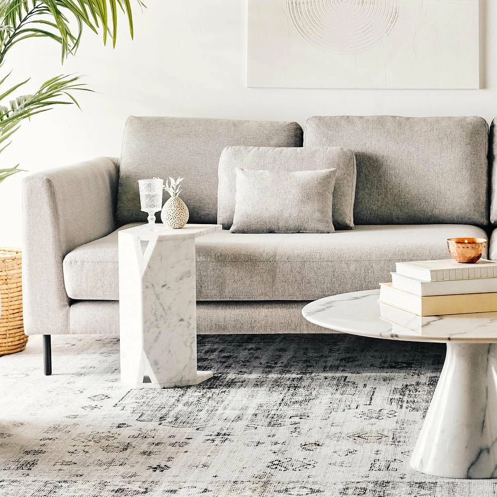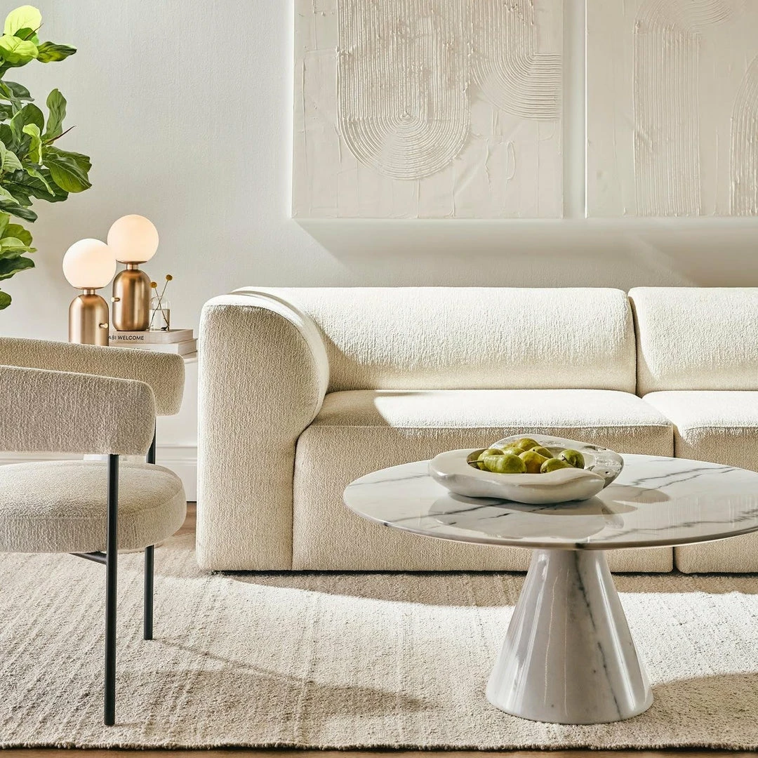 The Claudio coffee table is a beautifully round and gracefully compact piece. On its own or nested for added dimension and height, its charming character is accentuated by a composition and veining unique to every table. Each piece of marble is expertly crafted out of a unique piece of natural stone, creating beautiful variations and one-of-a-kind details.