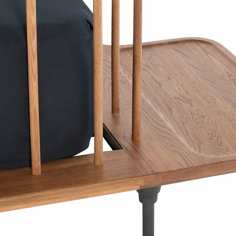 Finish: Hard Fumed Oak Headboard, Matte Black Legs