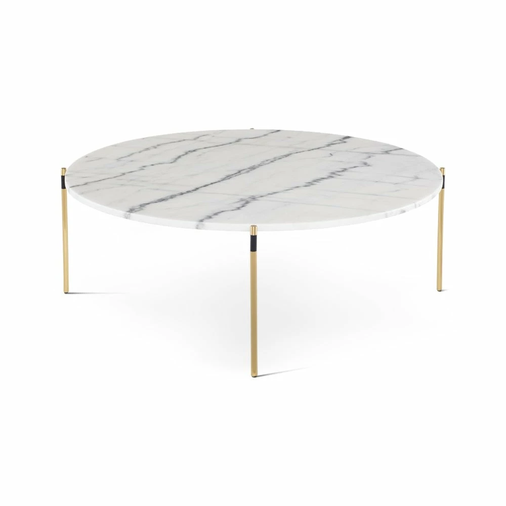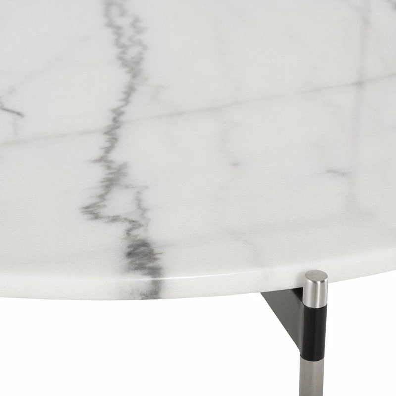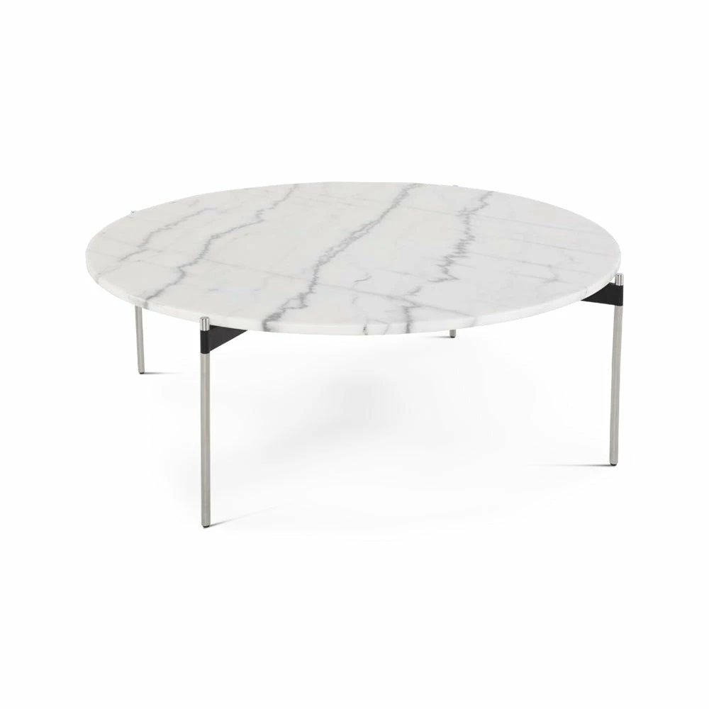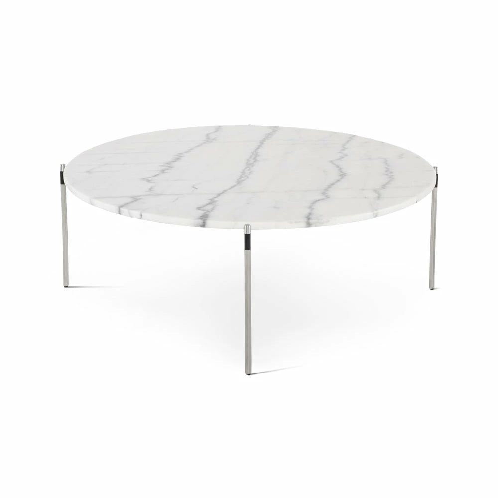 Refined simplicity. A smooth surface with richly textured marble grain rests effortlessly on slim steel rods. The formal elegance of stone and steel is lightened and softened by the subtlety of the design. Each piece of marble is expertly crafted out of a unique piece of natural stone, creating beautiful variations and one-of-a-kind details.