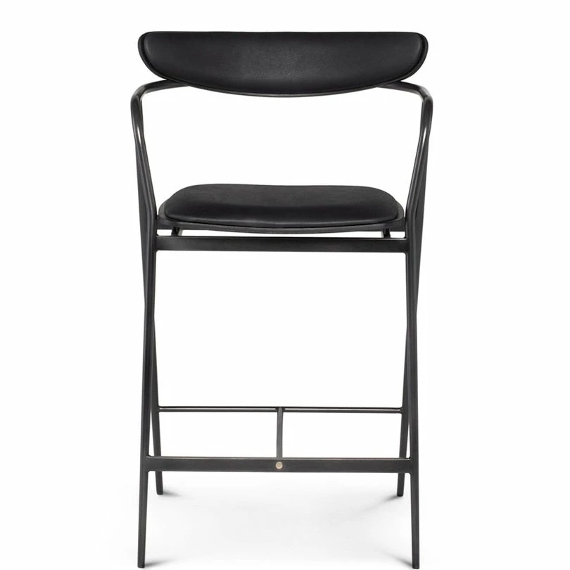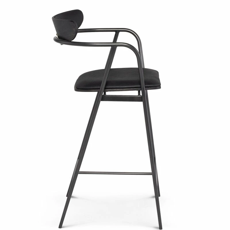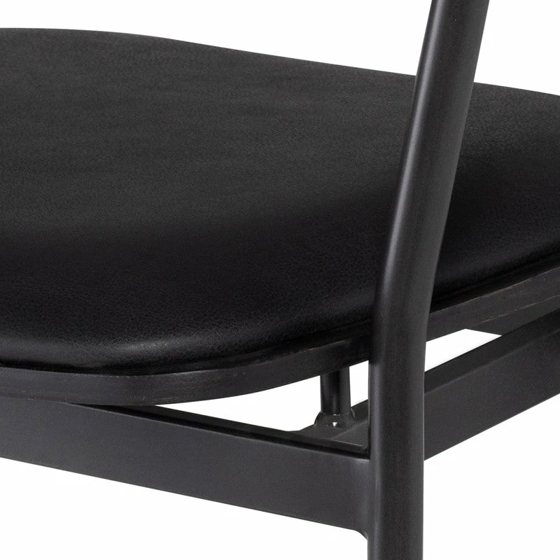An elevated take on industrial seating. Slim, angular steel framing features a seared oak seat and curved back with top grain leather cushioning for effortlessly cool sculptural style.