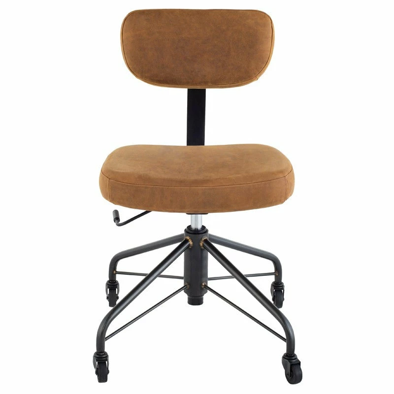 The Rand office chair incorporates the elegant simplicity of industrial era chic with modern comfort and functionalism. Featuring a fully adjustable padded leather seat and backrest and blackened steel frame with castor feet the unique Rand office chair makes a compact and convenient option for small spaces.