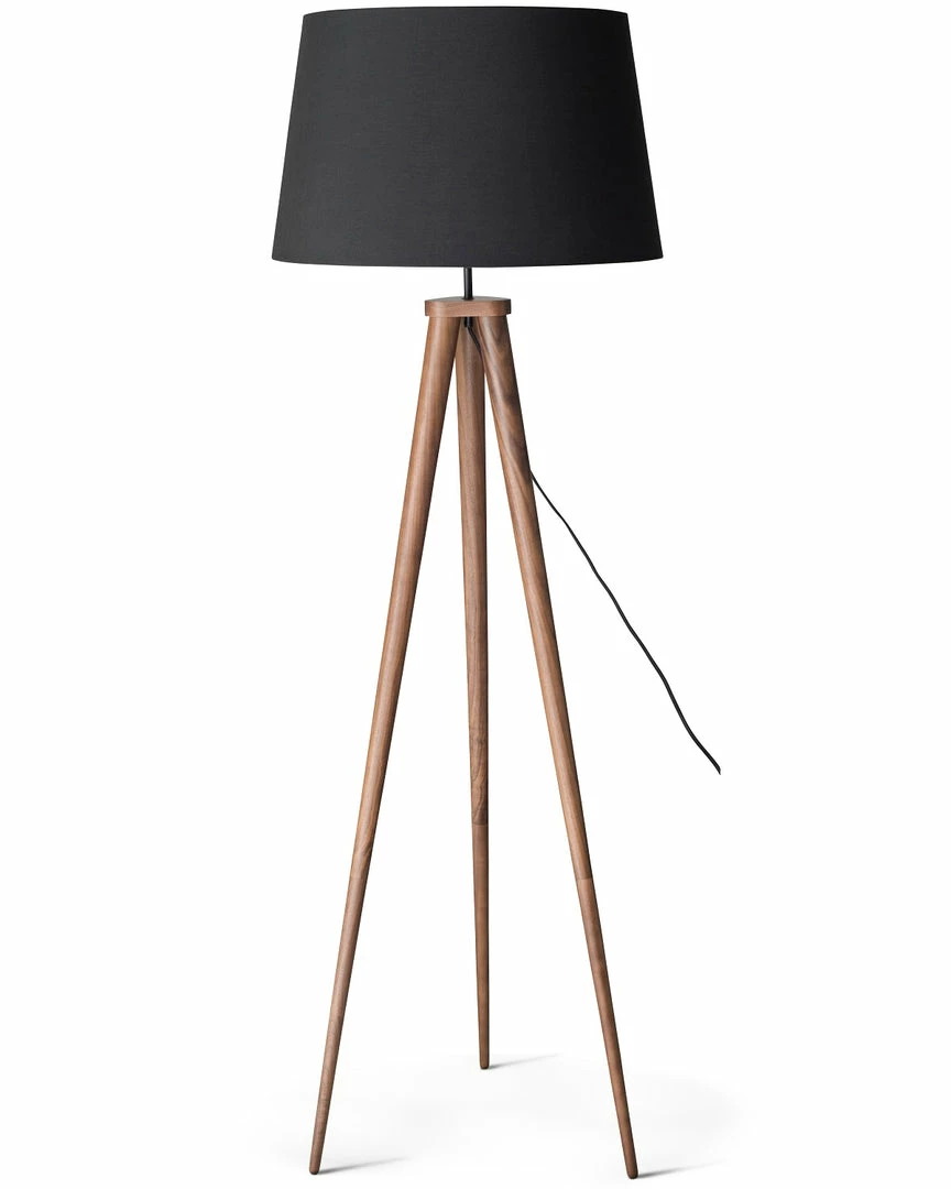 The walnut-stained 3-prong spiked wood base provides a solid foundation with mid-century modern vibes in the Triad Floor Lamp.