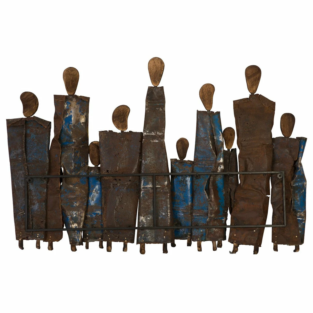 Made from honey drums, this wall piece tells the sweet story of the people who collect honey in Northern Thailand and an interpretation of the clothing they wear. The drums can only be used a handful of times before they oxidize. In repurposing the metal, they are able to bring in an additional source of income beyond the bees they rely on to produce the honey. This recycled art is not only great on any wall, but it also has a beautiful story behind it.