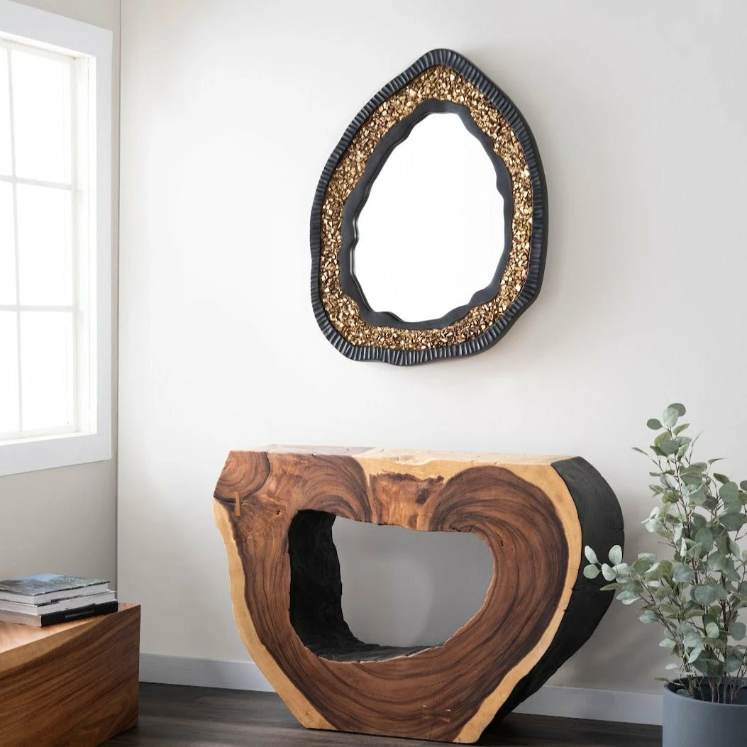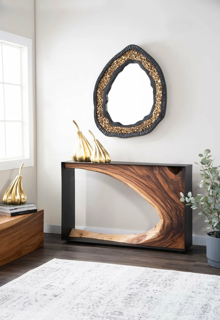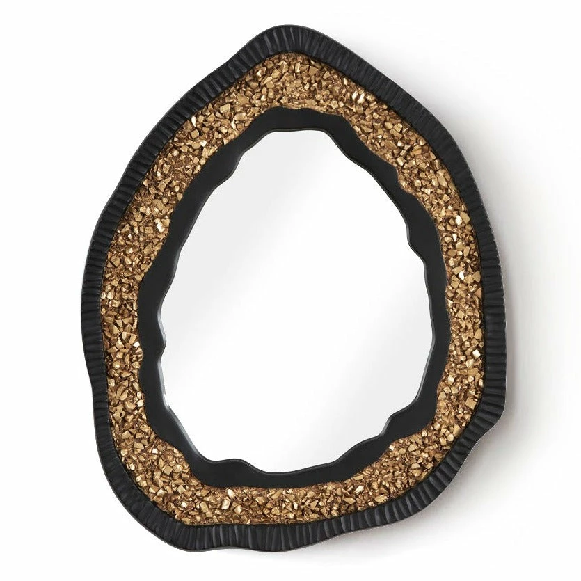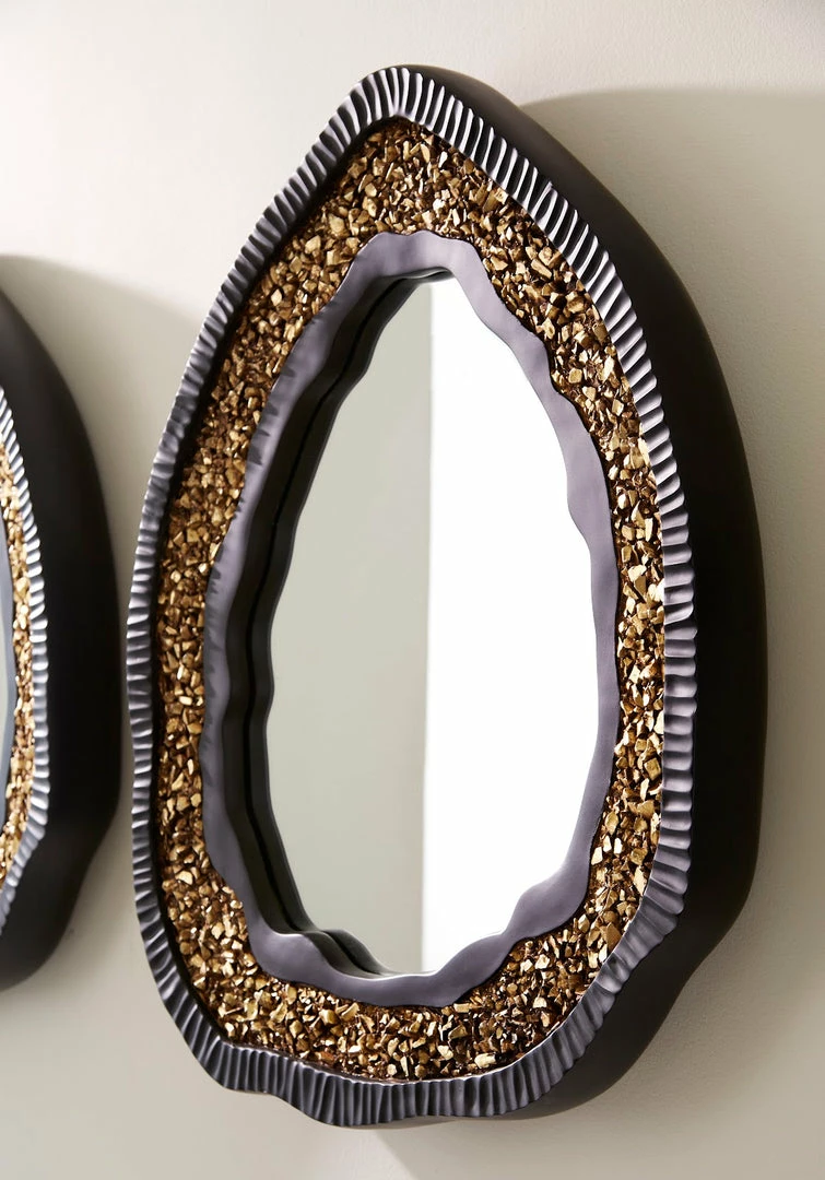 Exhibiting the characteristics of a real piece of glittering stone, the Geode Gold Mirror is a trickster, as it is made of composite in a mix of matte black and gold finishes rather than rock that has developed its sparkle over centuries underground. We cast the gold and black decorative mirror with organic lines to mimic the asymmetrical profile for which real geodes are known. For a cooler color palette, we also offer the Geode in a black and silver combination. These oval mirrors reflect the ethos that Phillips Collection personifies: modern organic.