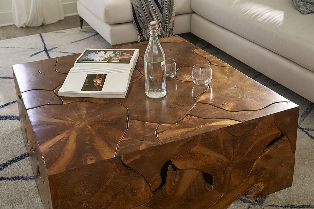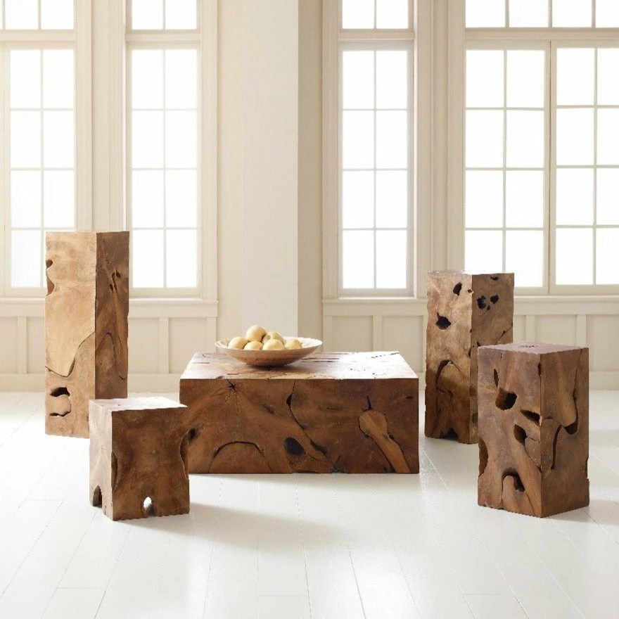 Rattling the status quo while participating in conserving our environment. Scrap pieces of scrap teak wood are hand assembled to create this organic table.