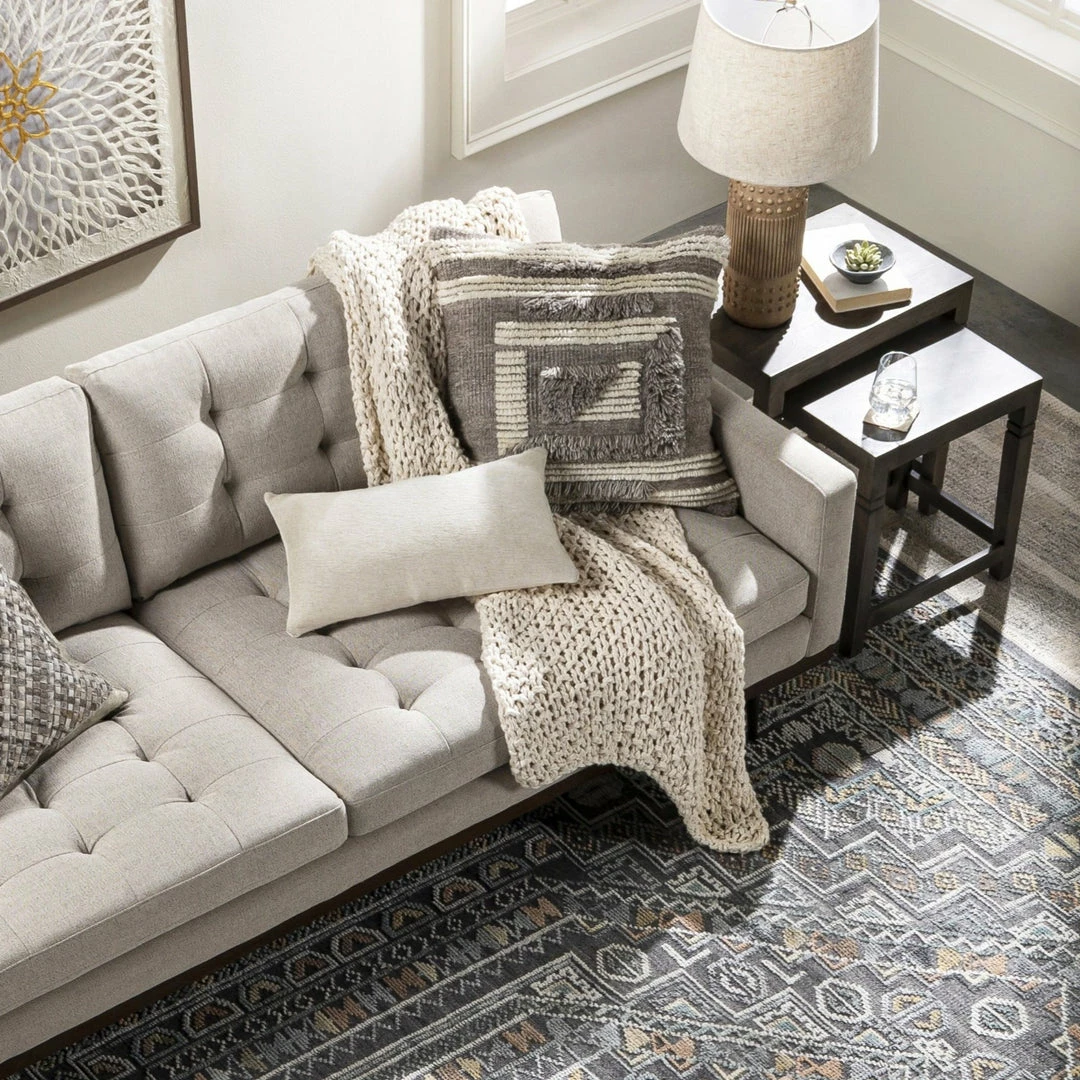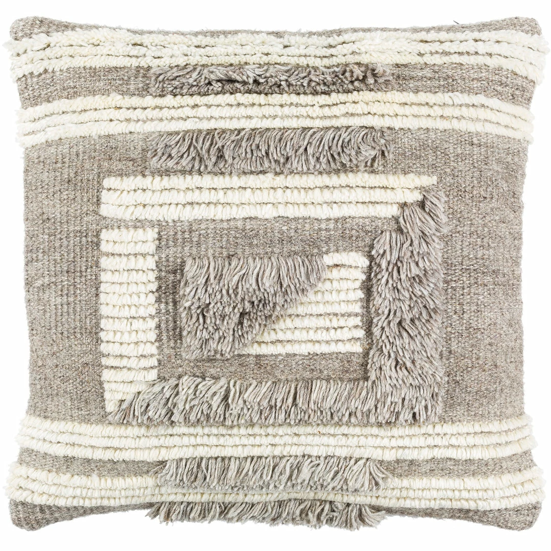 The Belu pillow collection is all about cozy texture with global inspired fringe designs in earthy neutrals and soft hues.