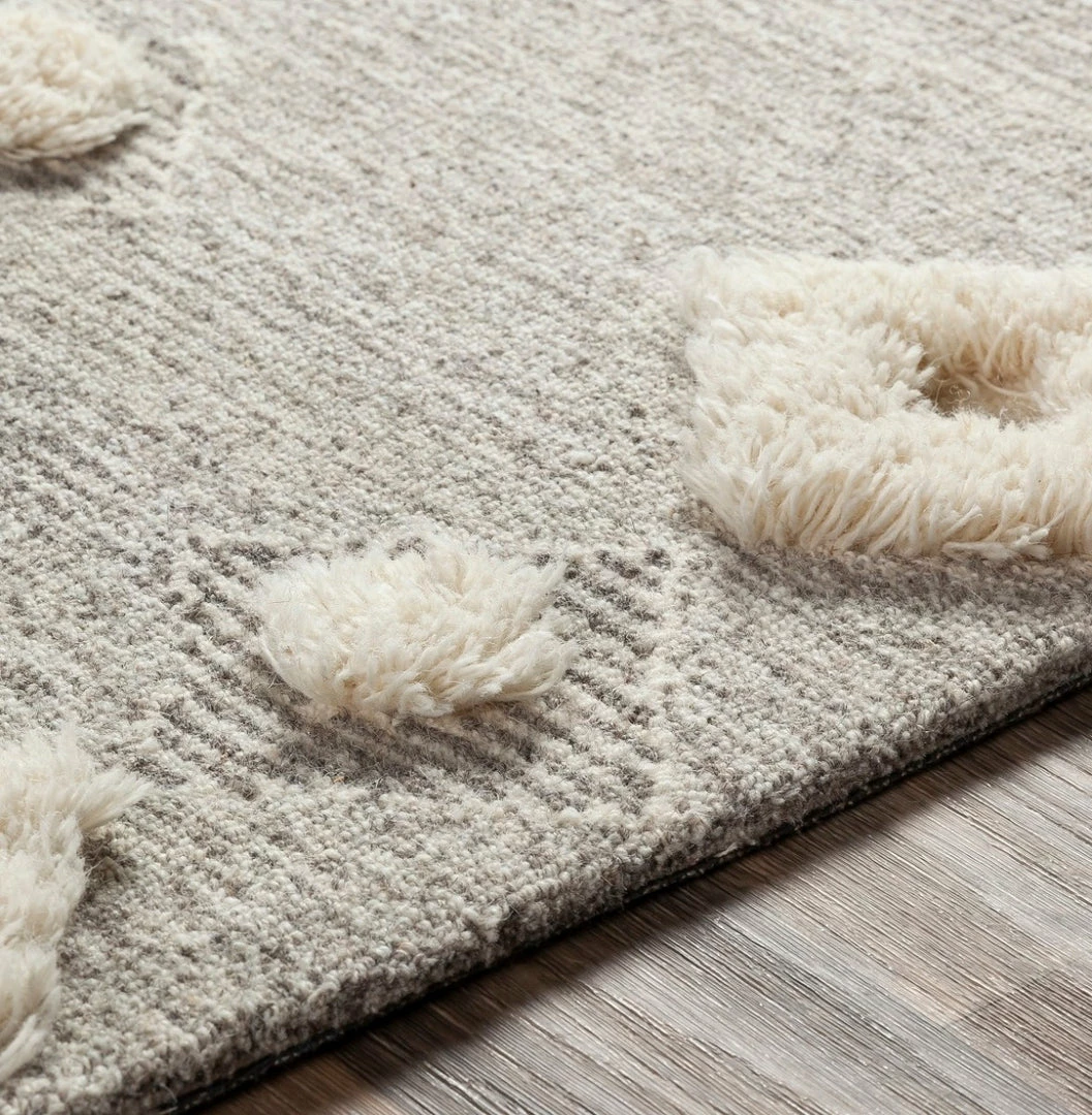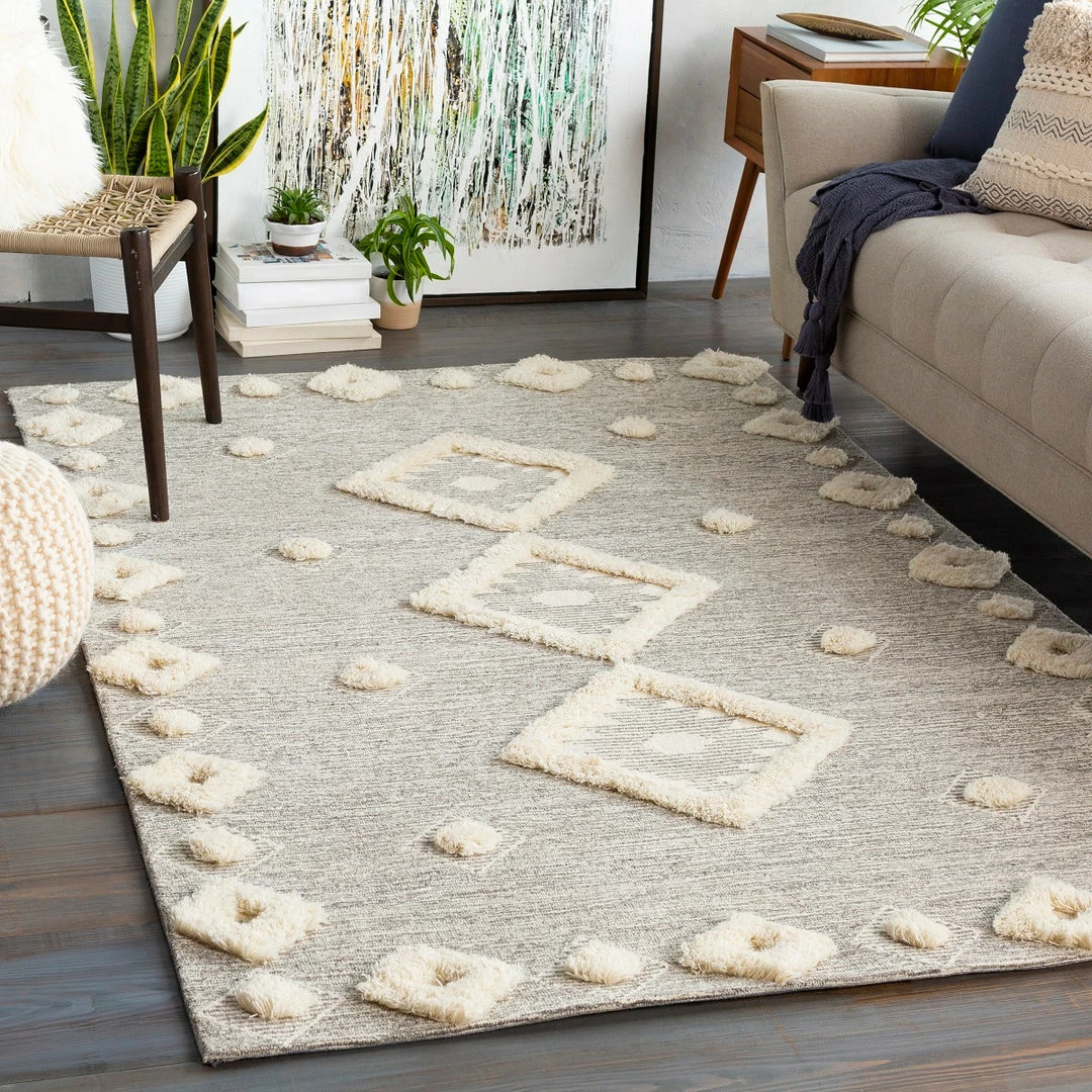 These masterfully hand-tufted wool rugs bring neutral and graphic tribal designs to life with textural detail.
