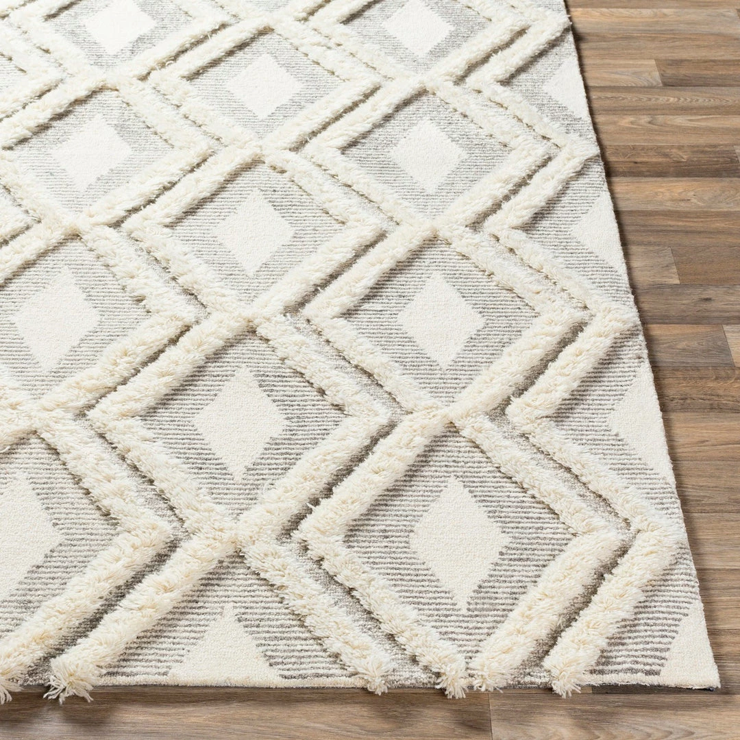 These masterfully hand-tufted wool rugs bring neutral and graphic tribal designs to life with textural detail.