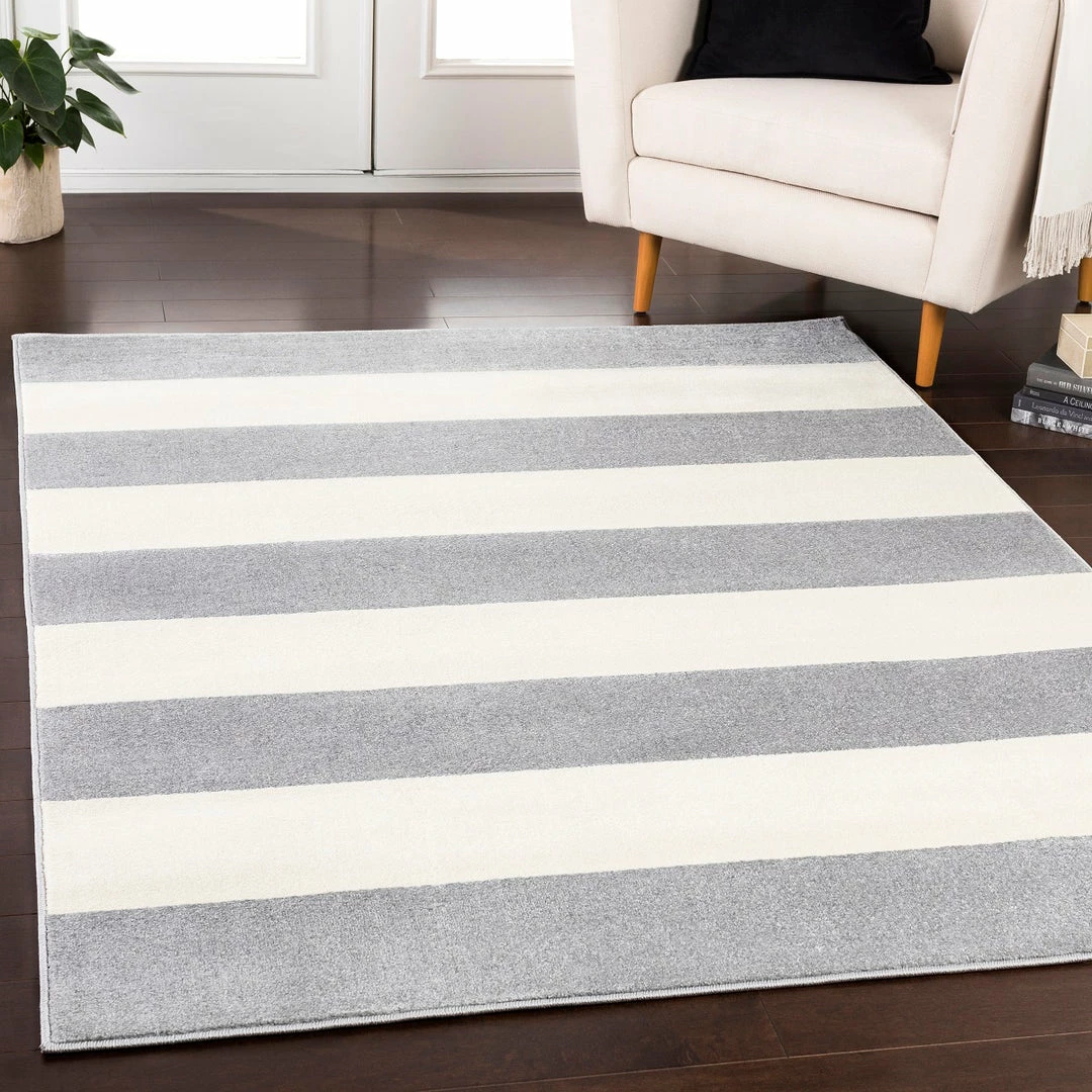 Discount 👍 SURYA CHUNKY STRIPES RUG: GRAY + WHITE 🎉