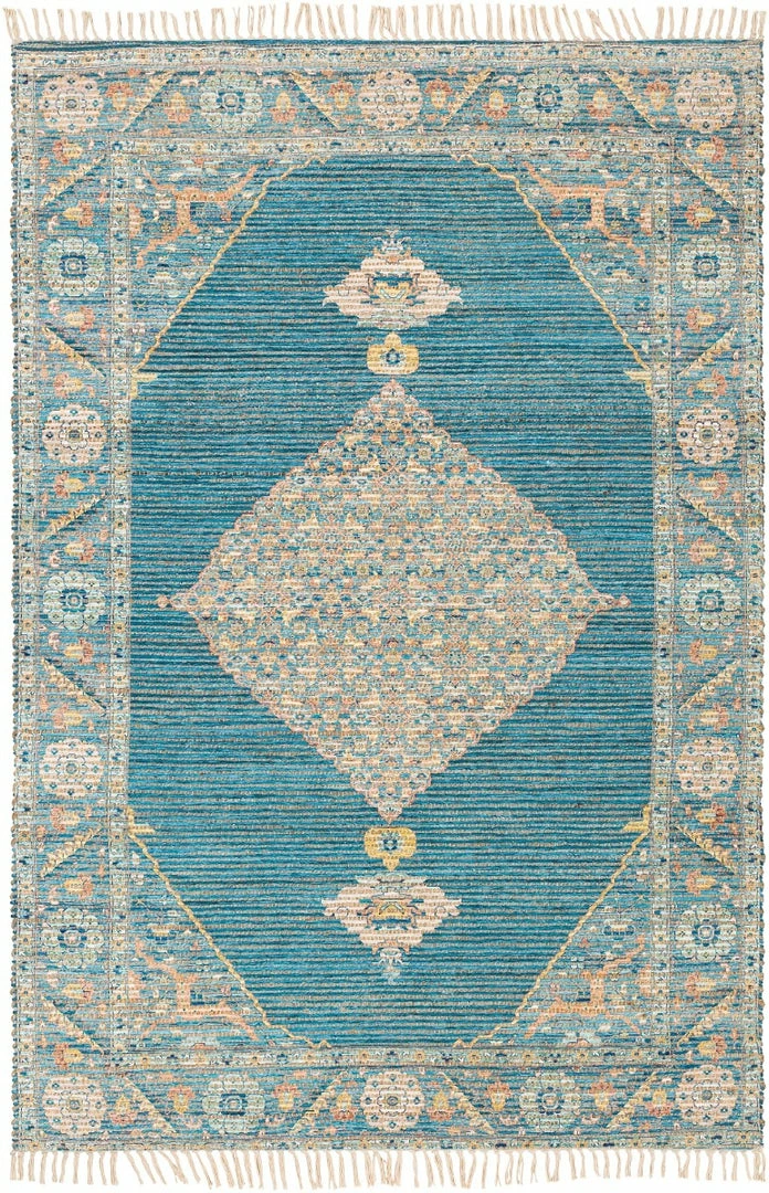 This meticulously woven blended jute rug features a striking global inspired print design. Perfect for adding bohemian eclectic charm to any space.