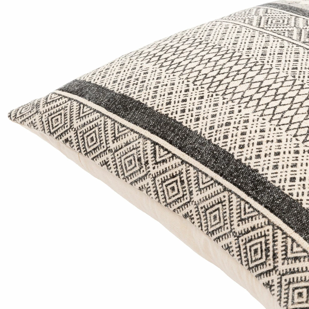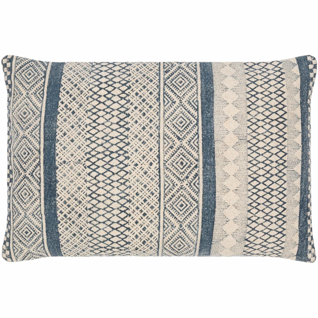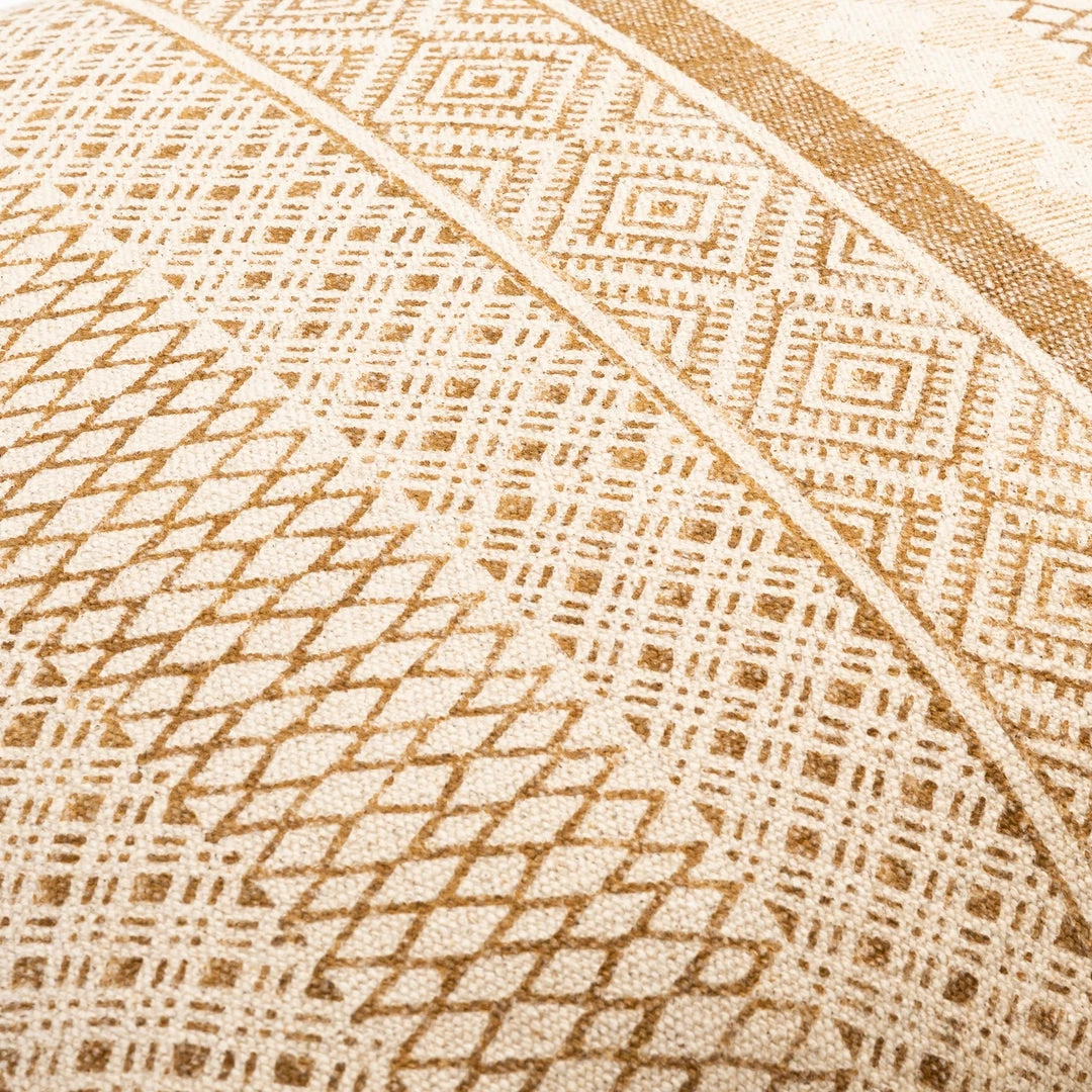 The Dola Pillow Collection brings eclectic charm with global inspired designs and graphic patterns in three mix and match colors block printed on a natural beige background.