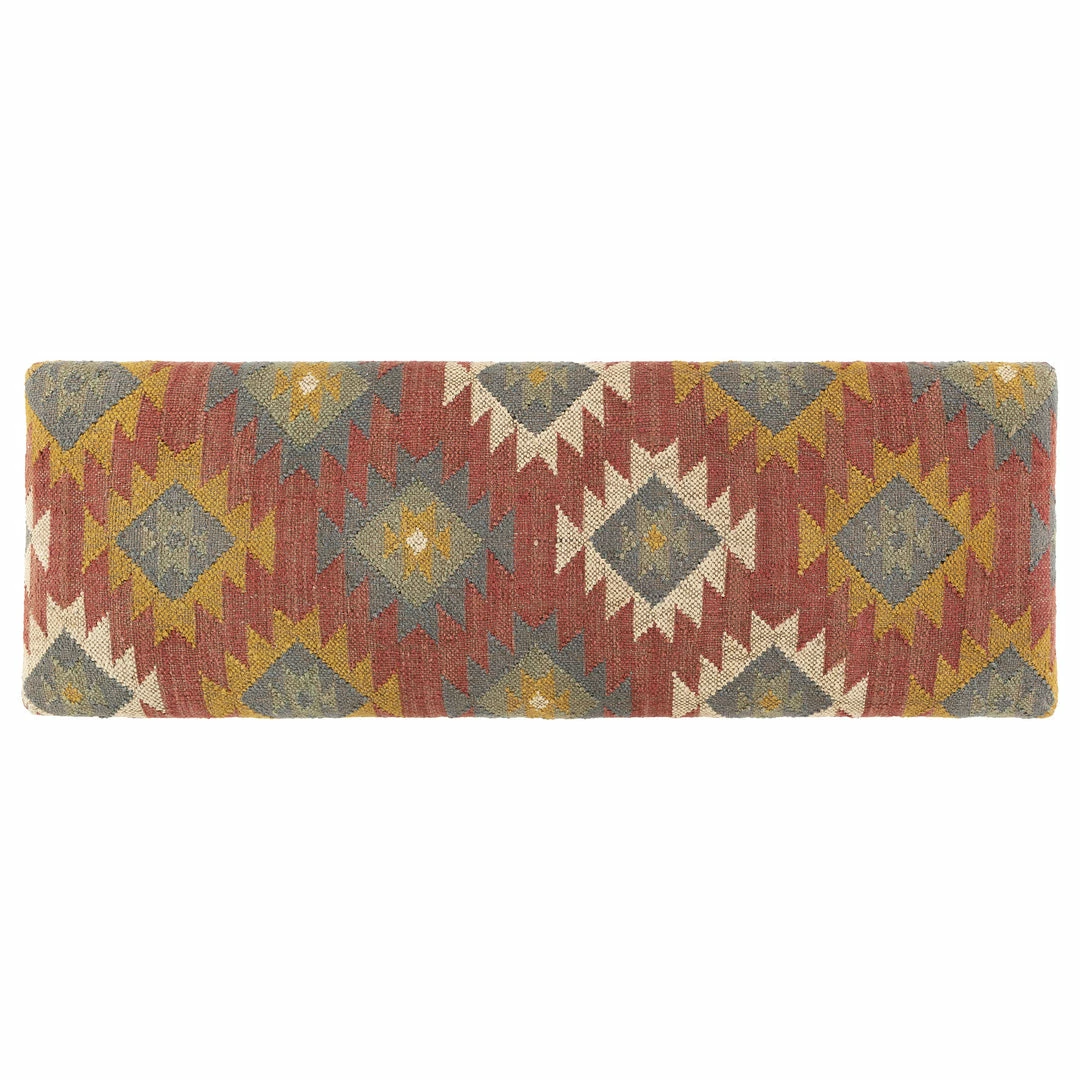 Taking cues from the intricate motifs of tribal kilim rugs, this eclectic hand woven wool and jute bench adds southwest appeal to any space.