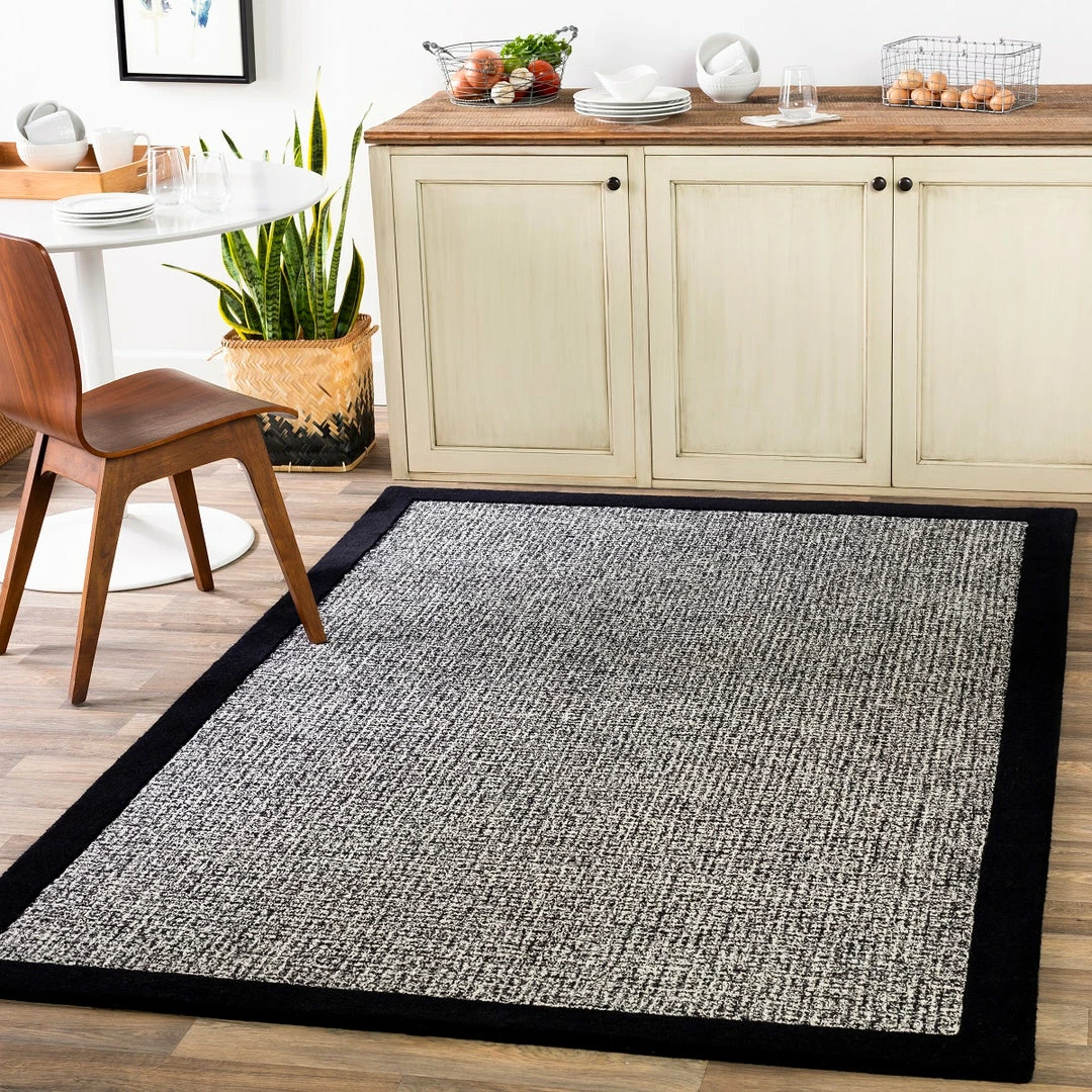 K.I.S.S. (Keep it Super Simple). This hand tufted tonal rug is bordered with a solid colored wool pile perfect for anchoring any space.