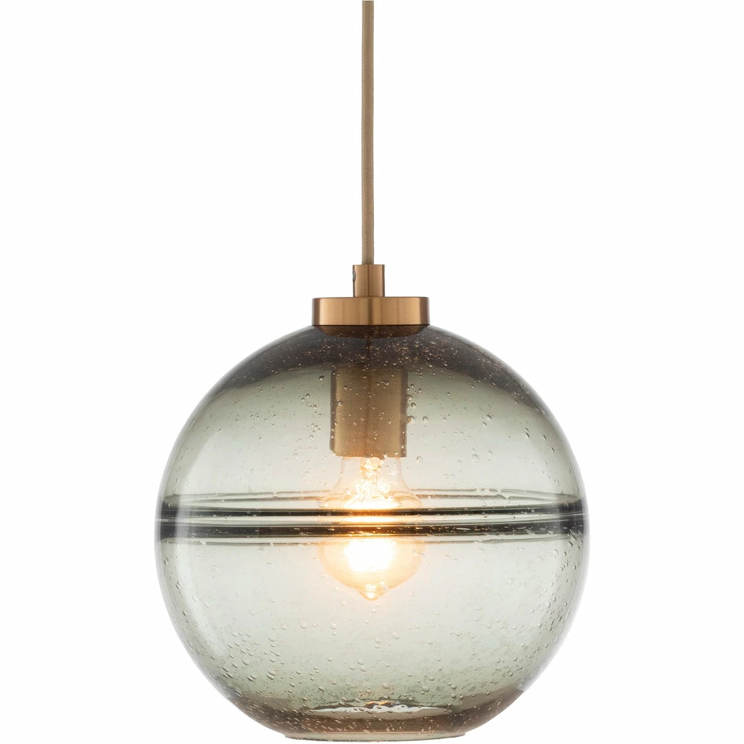 + Grey-GreenΒ seeded glass shade,Β Polished antique brass metal