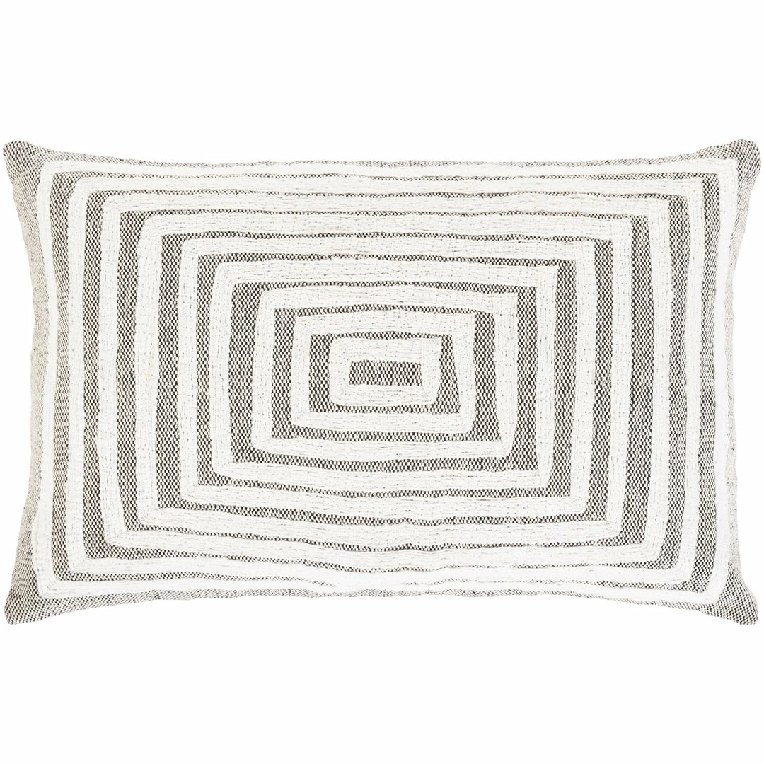 This hand woven accent pillow features a borderedΒ design inΒ tonal black and cream. They look beautiful as a pair on a bed or alone in your favorite chair to bring a modern minimalist feel into the room.