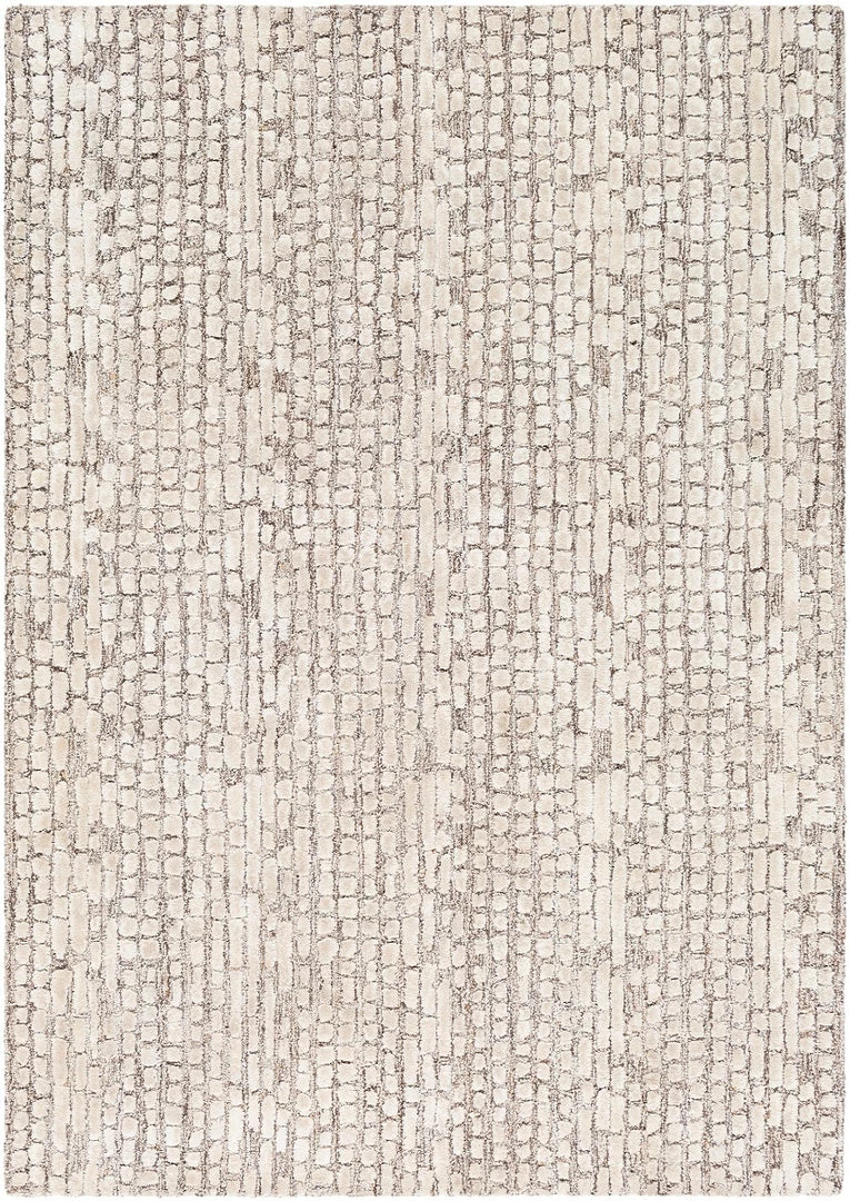 Hand-tufted by skilled artisans in India, the Montclair Rug Collection features contemporary textural and geometric patterns in a neutral palette. These exquisite rugs are constructed of wool and viscose that give a lustrous sheen that feels naturally soft underfoot.