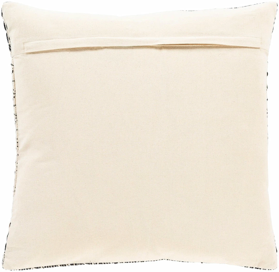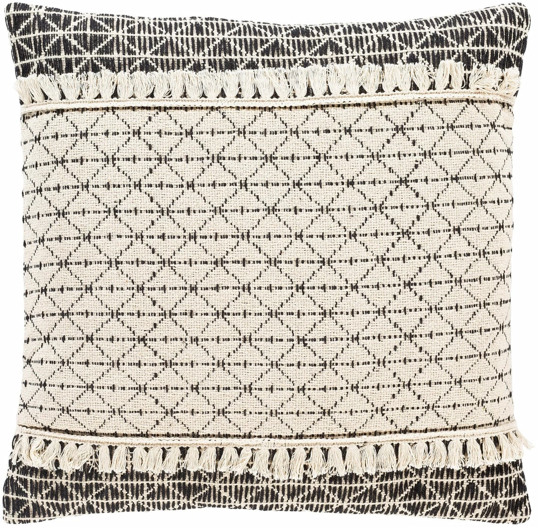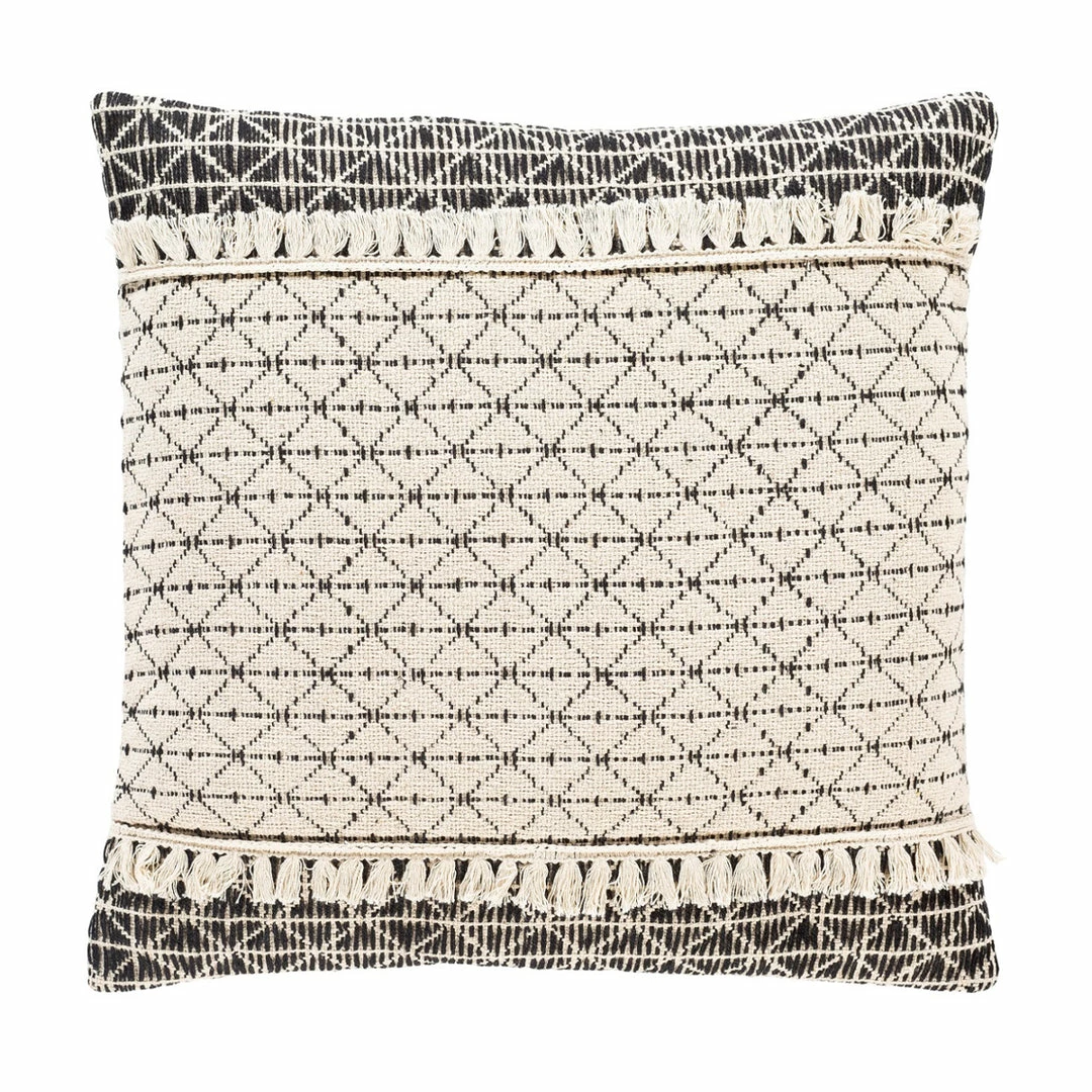 Black and Ivory accent pillow with ethnic diamond pattern and tassel detail.