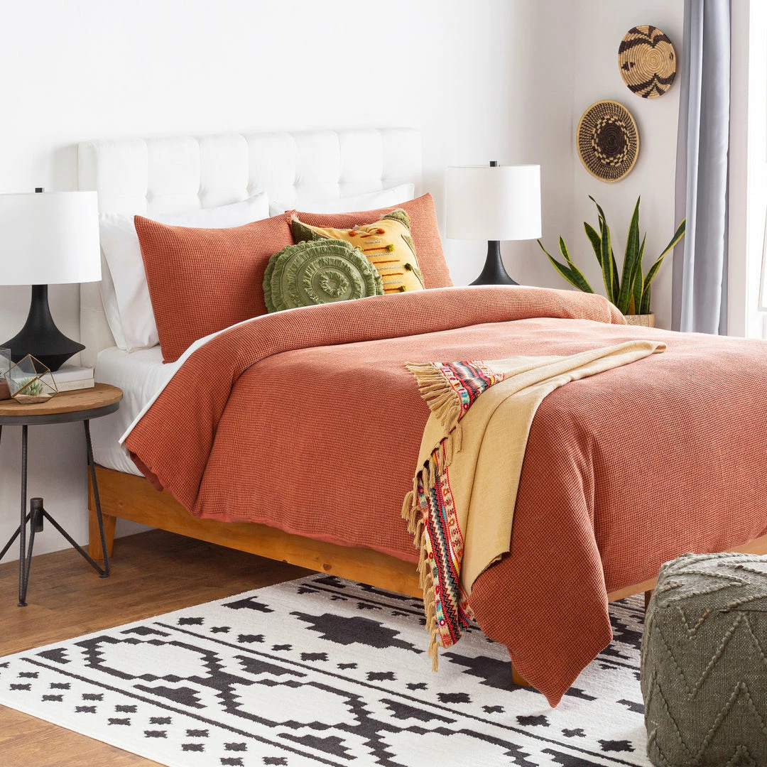 Construction: Knitted, Embroidered Detail, Fringe Edge.