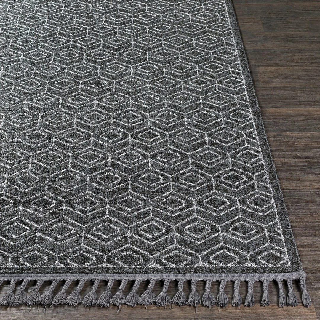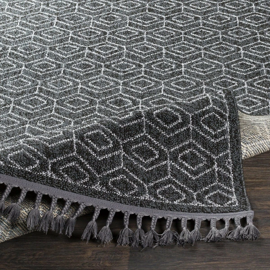 This distressed vintage print rug collection revives the antique-inspired look with a soft color palette finished with a refined fringe border.