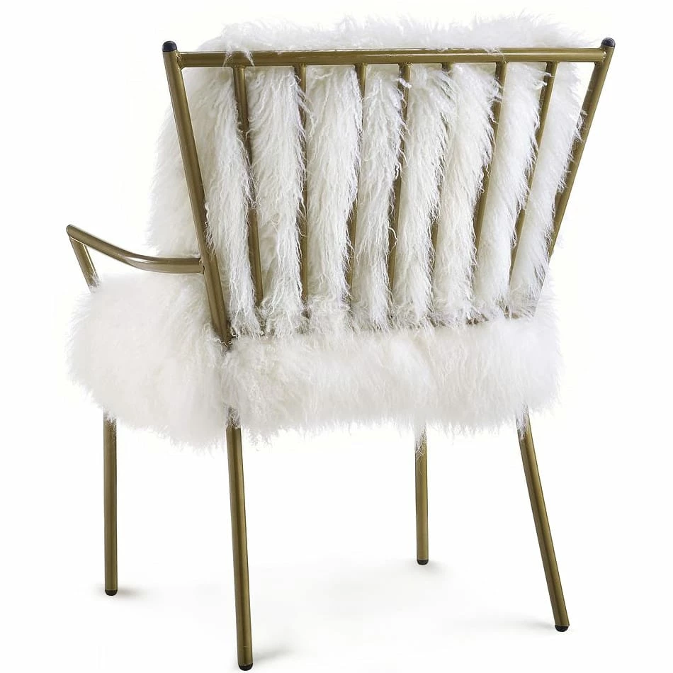 Dive into a lavish natural sheepskin with the Sherpa Shag Chair in white. The brass finished iron frame is sturdy and complements the overflowing sheepskin. A high density foam offers ample support. Available in white and gray the Sherpa Shag adds a lux look with soft modern appeal.