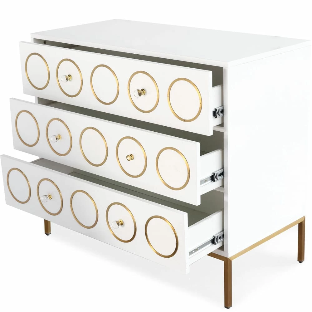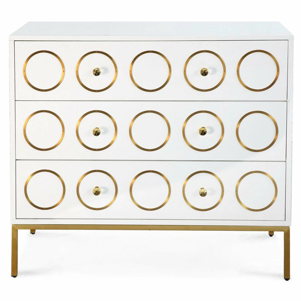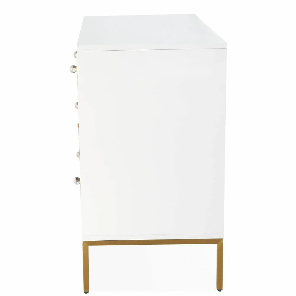 A mix of Mid-Century modern design and Hollywood glam decor the Christie collection is born to make a statement. We love the brushed gold design and the lucite hardware against the lacquered white finish. Add this piece to any room to crank up the glamour.